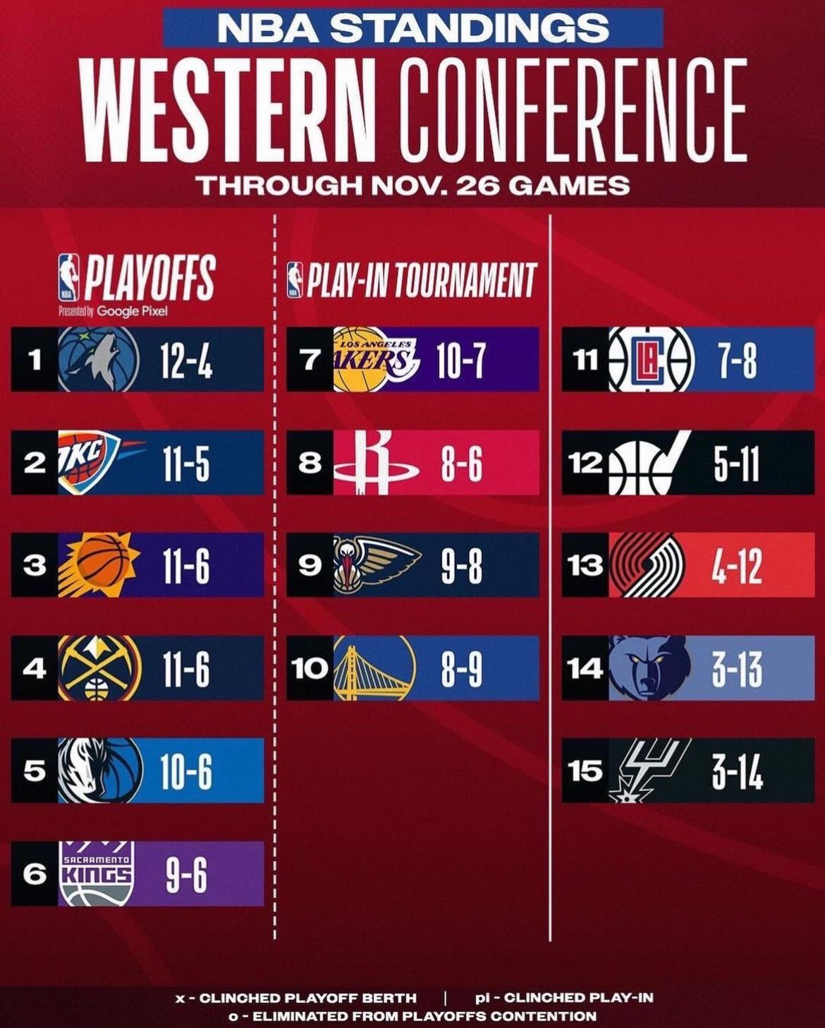 Hope they beat the Thunder, Jazz and Hornets to keep this going. Thunder will be tough and after those 3 games, December will be a tough month. Stacking these wins early is awesome
