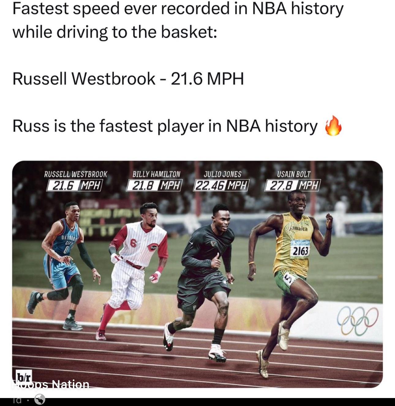 Prime Brodie was must see tv… by Bigjmann555 Northwest DivisionOklahoma City ThunderWestern Conference Prev Post Dennis nutmegs KD and Pascal finishes with slam. November 30, 2023 Next Post Throwback: Steve Nash Going Berserk Right Before He Got Fired November 30, 2023 5 Comments Unwipedbutthole 2 years ago 🐐 THlSGUYSAYS 2 years ago While dribbling MrProfessor 2 years ago Most explosive athletic player of all time and yes more than Ja and Rose, idc what some people say Mike_Huncho 2 years ago Last time I saw Russ in OKC, I had seats right behind one of the goals. Watching him run towards you at those speeds was insane. LoganH1219 2 years ago Anyone else remember genuine discussions comparing the speed of Westbrook, John Wall, and DeAaron Fox when he first entered the league?Write A CommentYou must be logged in to post a comment.