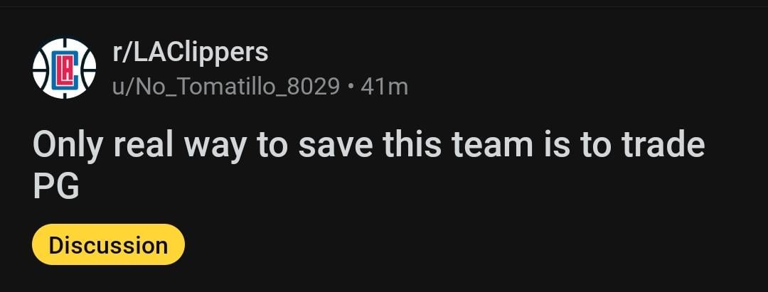 I think he has a bit of a point. At this point in time PG has the highest trade value on the team, and if we could get kawhi to take up the role PG has, and get someone that fits our squad better in return, then it would undoubtedly be a win-win. I’m not saying I want this to happen but I can’t help but see the point he’s making.