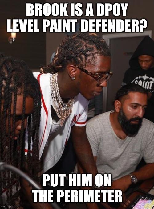 He keeps getting exposed inside the paint too, though not entirely his fault as Beasley basically can’t slow down Haliburton which made Brook need to come over and help Beasley out, which left guys like Turner being open under the rim. Plus Haliburton is the type of player which Brook isn’t good at defending, fast and good at shooting floater