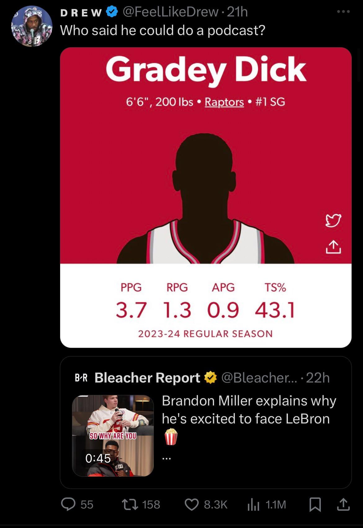 Like Gradey out of all podcasters to criticize?? That NBA fan needs to broaden their horizons
