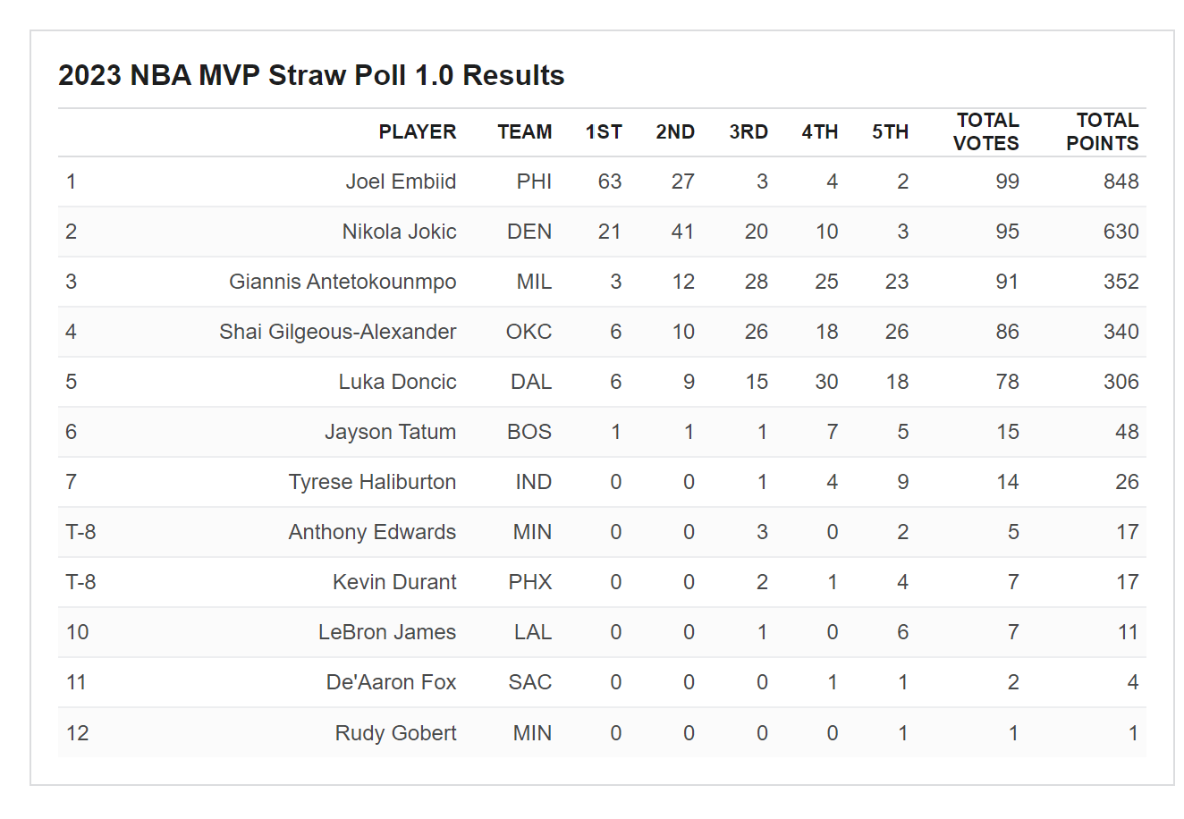 It’s understandable that Embiid is MVP, he’s amazing, but why Luka is so low?