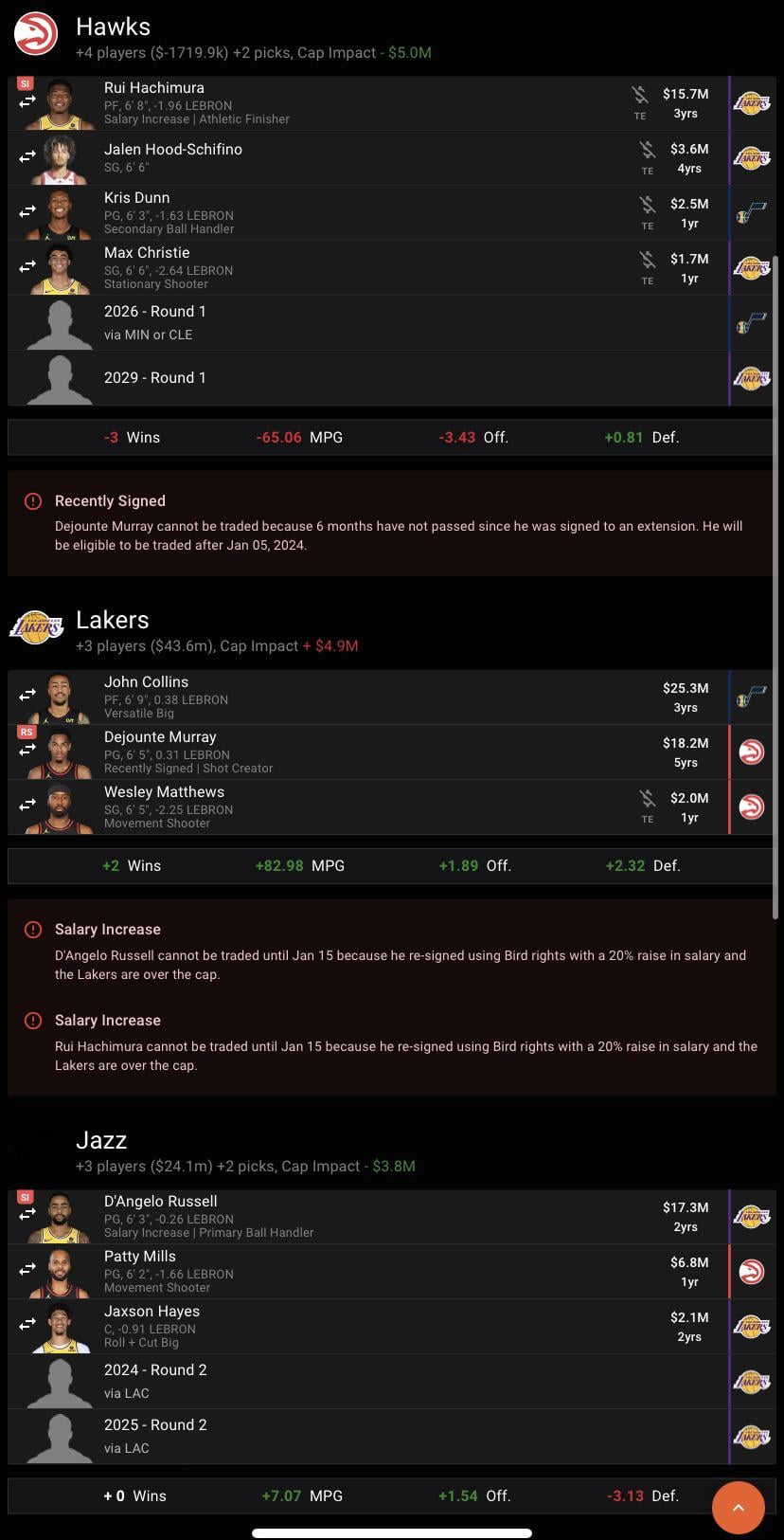 For the Hawks, you get two firsts to deepen the asset pool, Rui as a long term piece to back up and/or play next to JJ, a good 3 and d prospect in Christie, another young guard in JHS, and bring back Dunn who can be the defensive backup for Trae this year while letting Bufkin and Lundy develop.