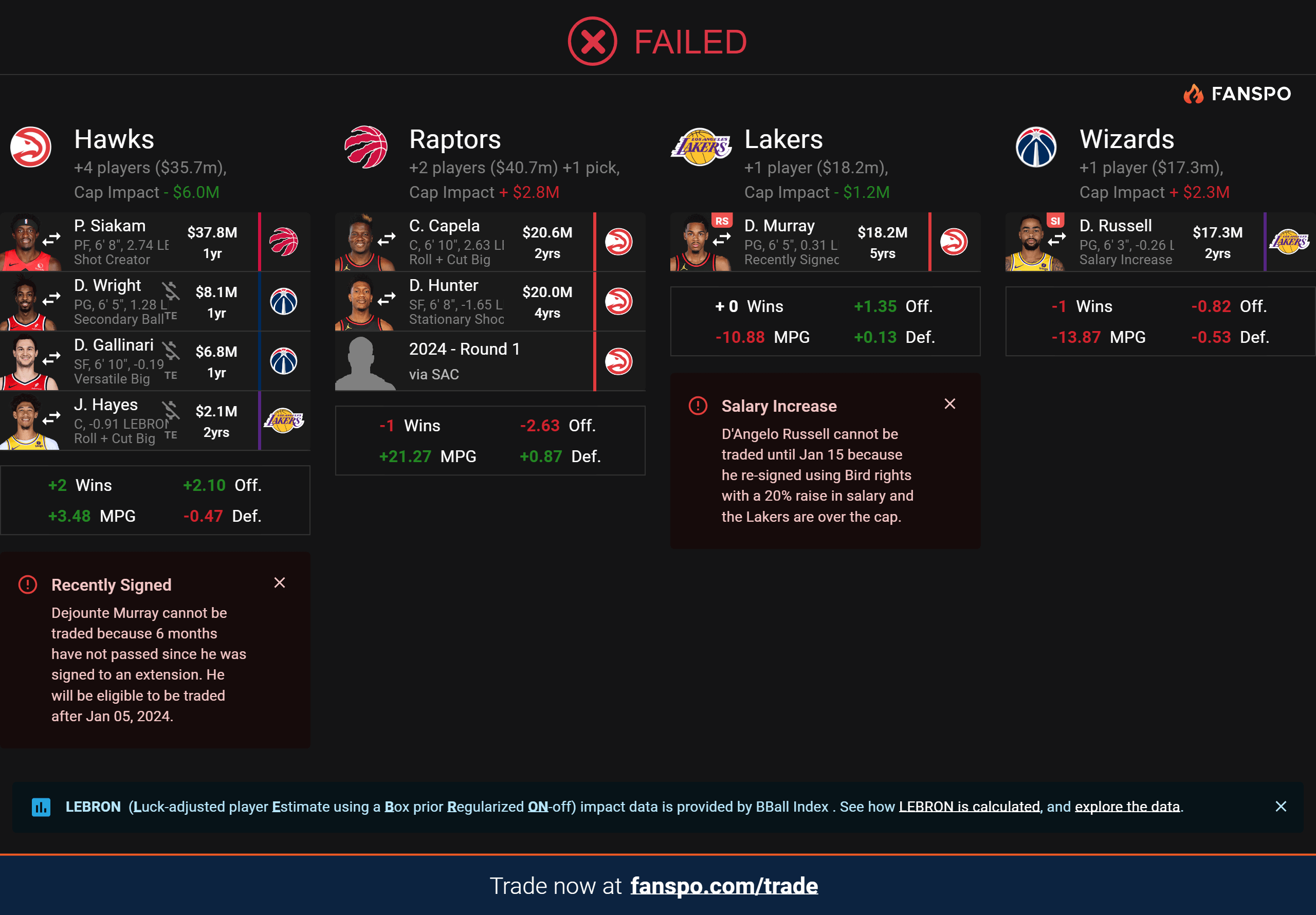 Kinda seems like we come out the worst of all teams involved. Either we are stuck paying Siakam 38-55 mil/yr (expected escalating salary til he is 34. YUCK) or we cant resign him at all. No Thanks, either way. Not interested in paying him that kinda money for him to shoot >30% from 3 and iso spin his way into the paint howling for fouls, while JJ sits on the bench.