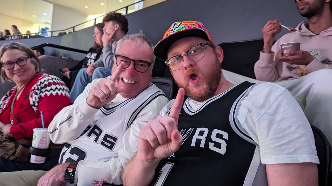 We showed up a little disappointed with Wemby in street clothes but the rest of the boys showed up. Ended up sitting with a fellow Hill Country champ from Gruene! GSG!