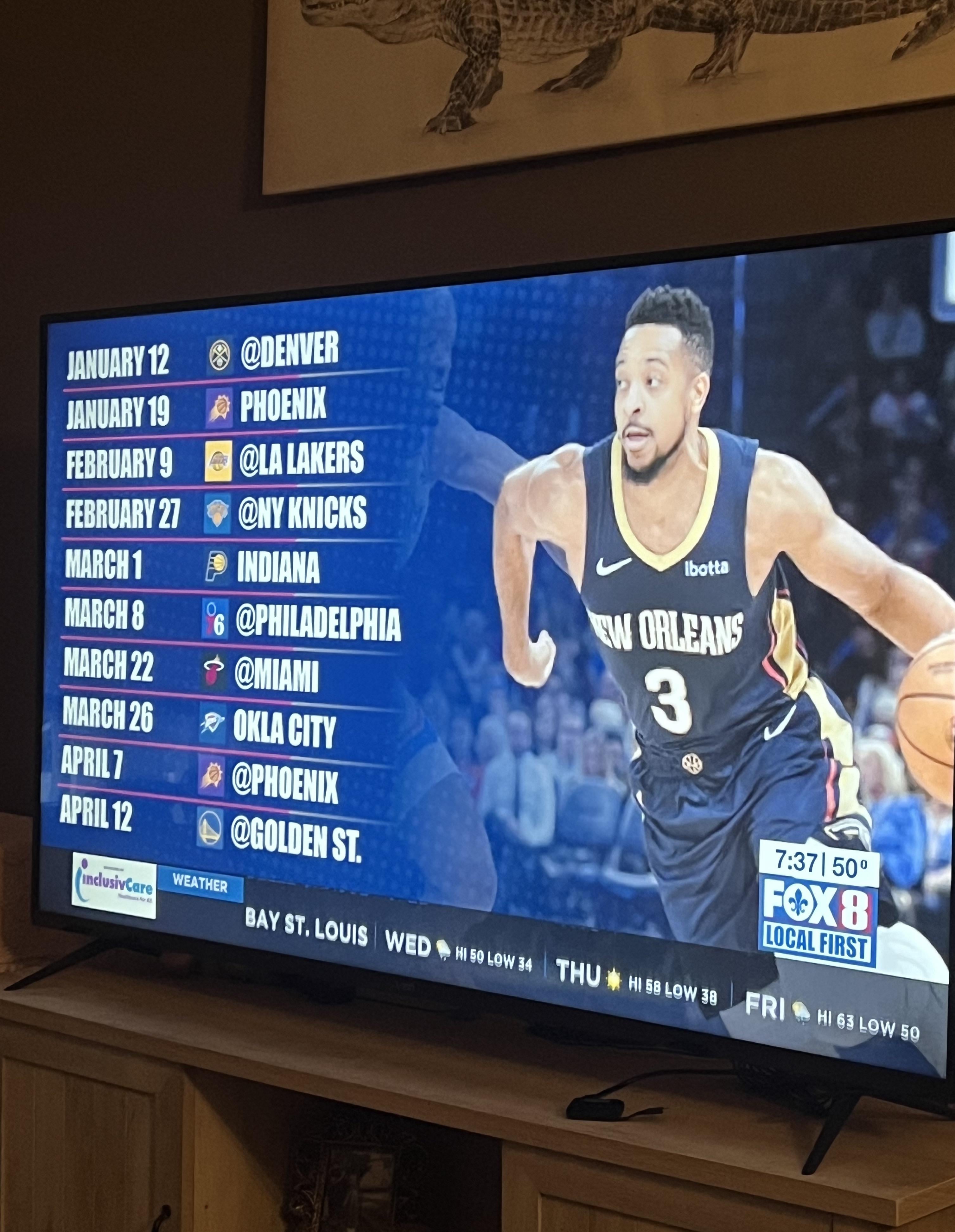 These games will be aired on Fox8! by WhoDat2241 New Orleans PelicansSouthwest DivisionWestern Conference Prev Post Miami’s Bam Adebayo wants in on the NBA’s list of elite big men January 3, 2024 Next Post Toronto Raptors Reveal Their Trade Intentions About Pascal Siakam! January 3, 2024 3 Comments Eventide718 2 years ago Such great news!! Thanks Mrs. B!! itsSRSblack 2 years ago About damn time. Could never understand why NFL is basically the only league that grants access to games on local broadcast. AgencyFew7601 2 years ago Will these games also be aired on Bally Sports? Or only available on the local Fox broadcasts?Write A CommentYou must be logged in to post a comment.