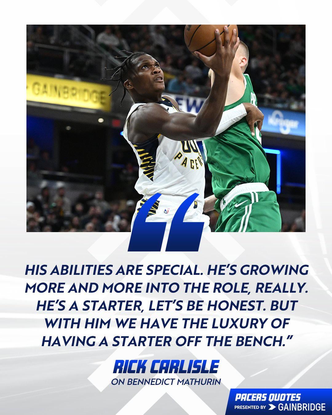 Mathurin has had some ups and downs (with glimpses of an insane ceiling) this year, but the hard coaching that he and Rick agreed to seems to be working pretty well pretty fast. In less than a season and a half, he’s grown out of a lot of the careless defensive lapses and forced shots. It’s certainly coming together.