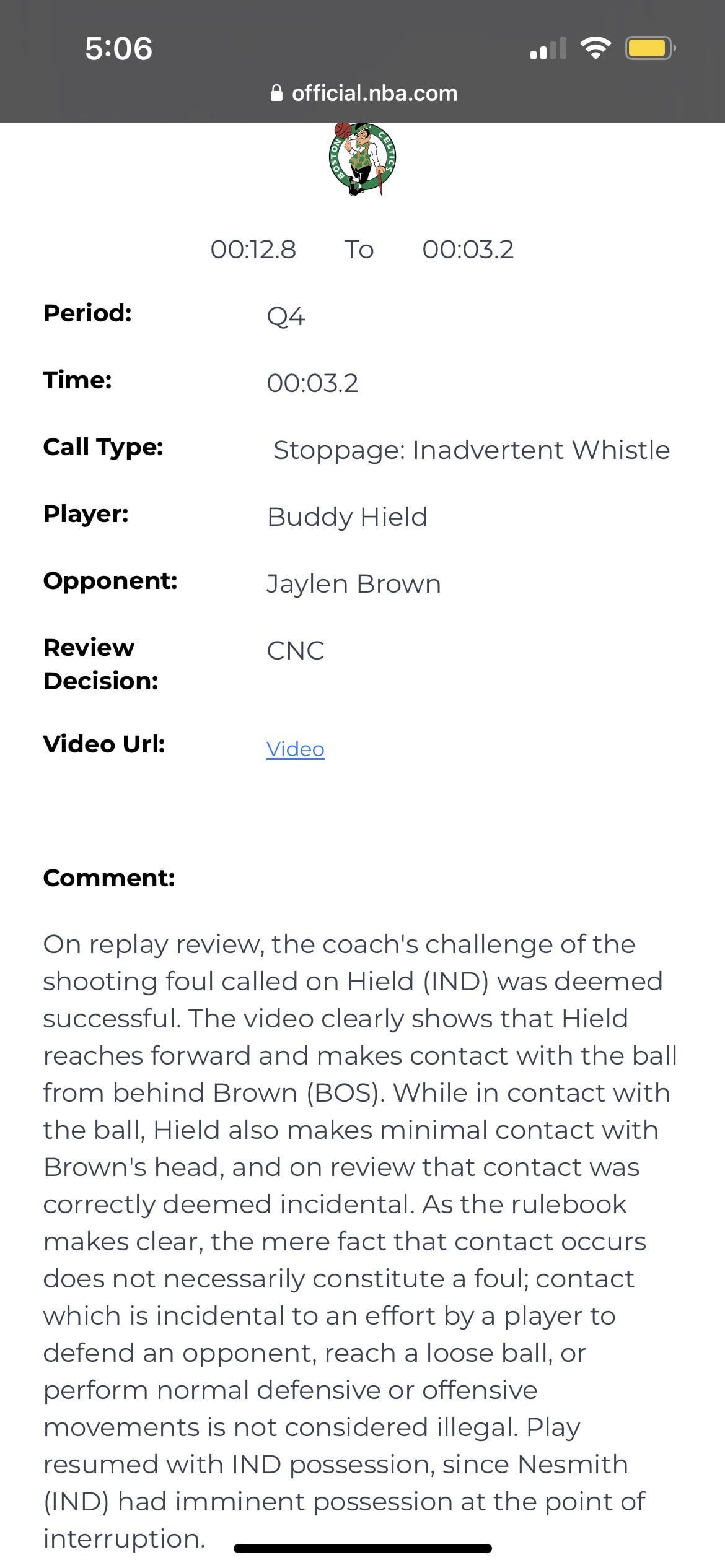So what they essentially did is “compromise” in their way. They weren’t going to admit they were wrong on the Hield overturned call but they’ll throw the Celtics a bone by saying they missed two calls on the next possession. Fucking corrupt bullshit.
