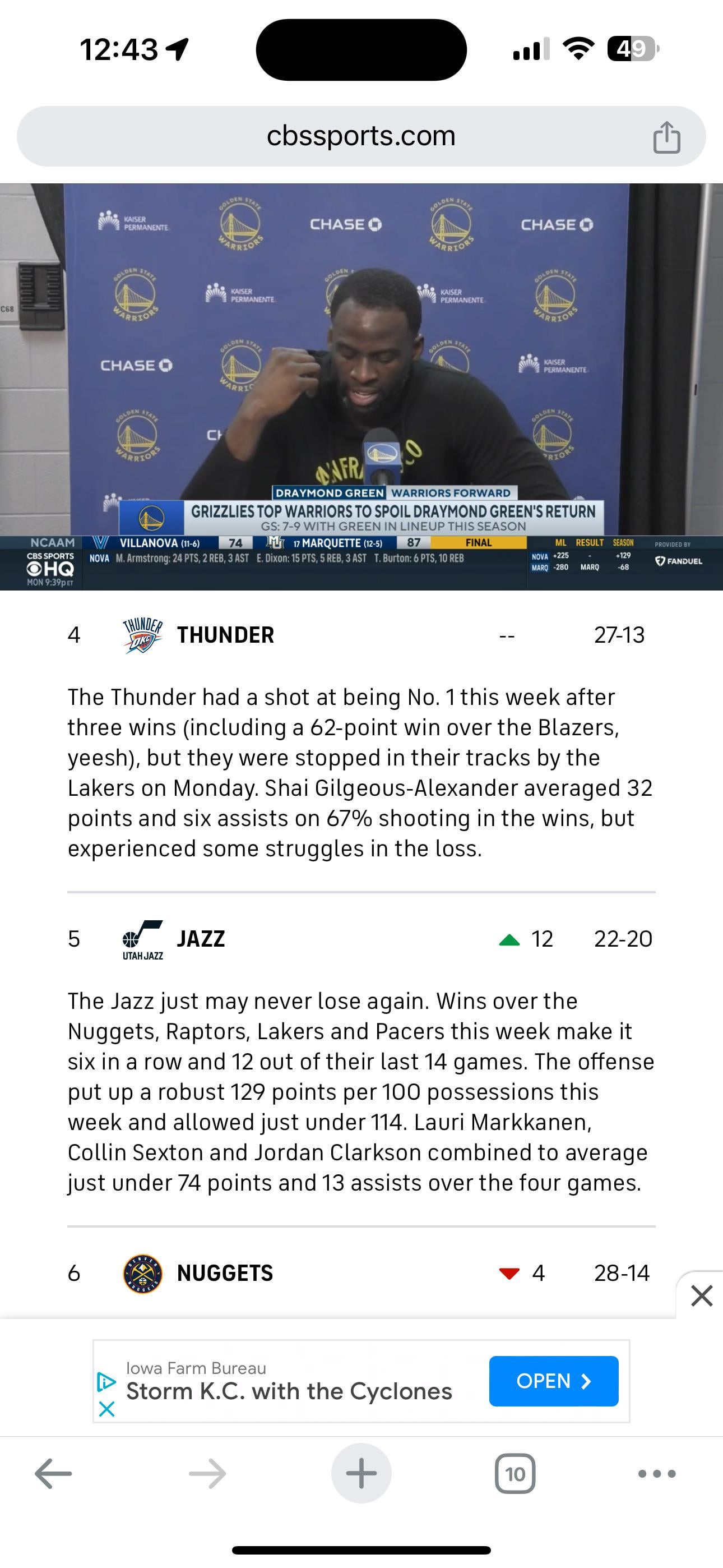 CBS Sports has Utah at #5 in the league. And I think that’s pretty damn cool. So I’m posting it.