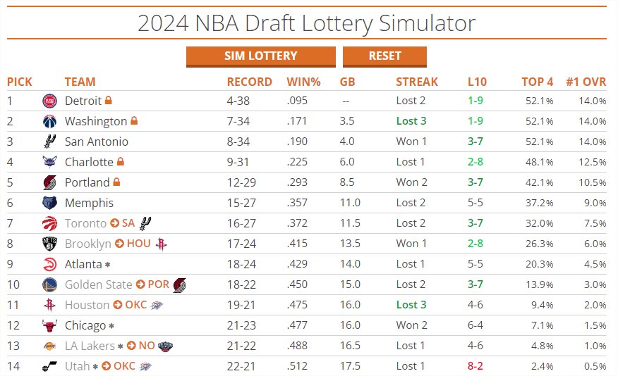 After years of fans being mad about the Wizards constantly picking in the 8 to 15 range, it’s at least reassuring that we’re not fucking around with the draft odds any more. Missing out on the top 4 would be a disaster given how starved we are for NBA talent.