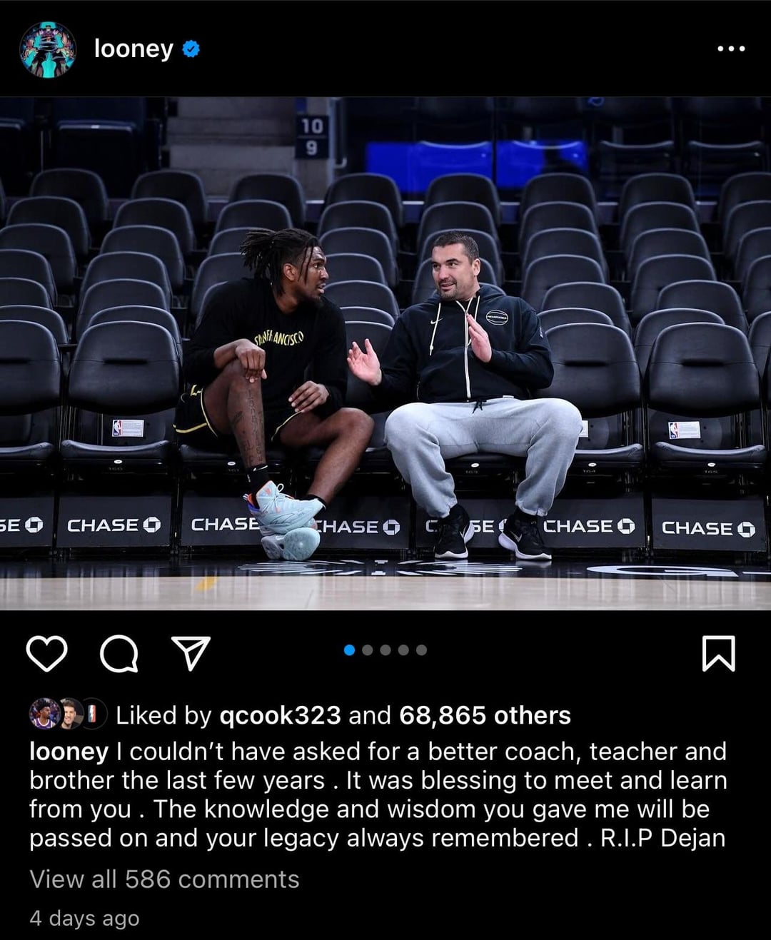 Anticipating a formidable display from Loon tonight against Atlanta—anyone else feeling the same? The Dubs, driven by the recent loss of assistant coach Dejan Milojević, are poised for a resolute team effort. Looney’s close bond with Dejan and a standout performance against the Hawks last January adds a poignant touch. Over a year ago, he notched 14 points, 20 rebounds, 4 assists, and a game-winning putback shot against Atlanta. Tonight’s game holds profound significance as it marks their first match since the tragic passing of Coach Milojević. Thoughts on Loon’s potential impact in this emotionally charged matchup?