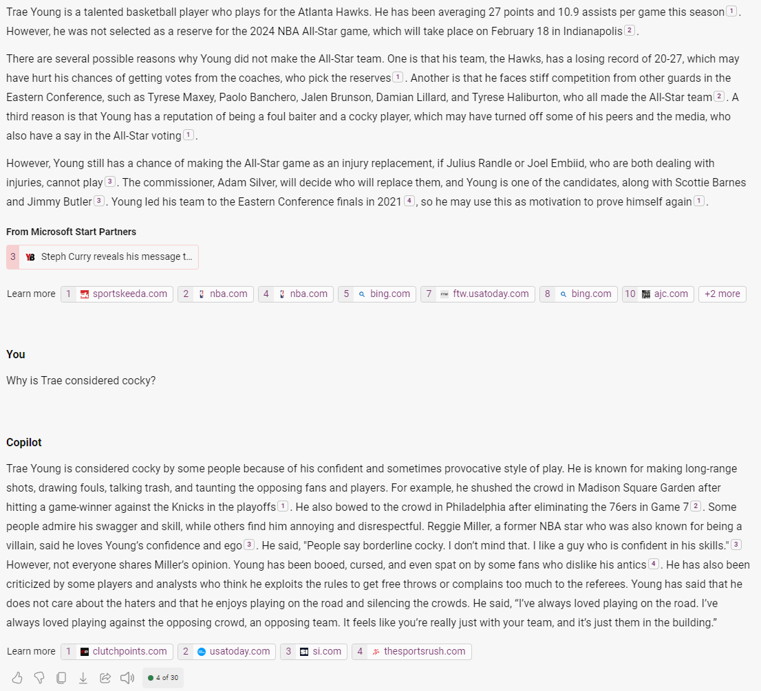 Obviously, AI got it wrong about the bow…that didn’t happen against the Sixers, but it’s funny what AI had to say. I used Copilot with GPT-4 to get this response.