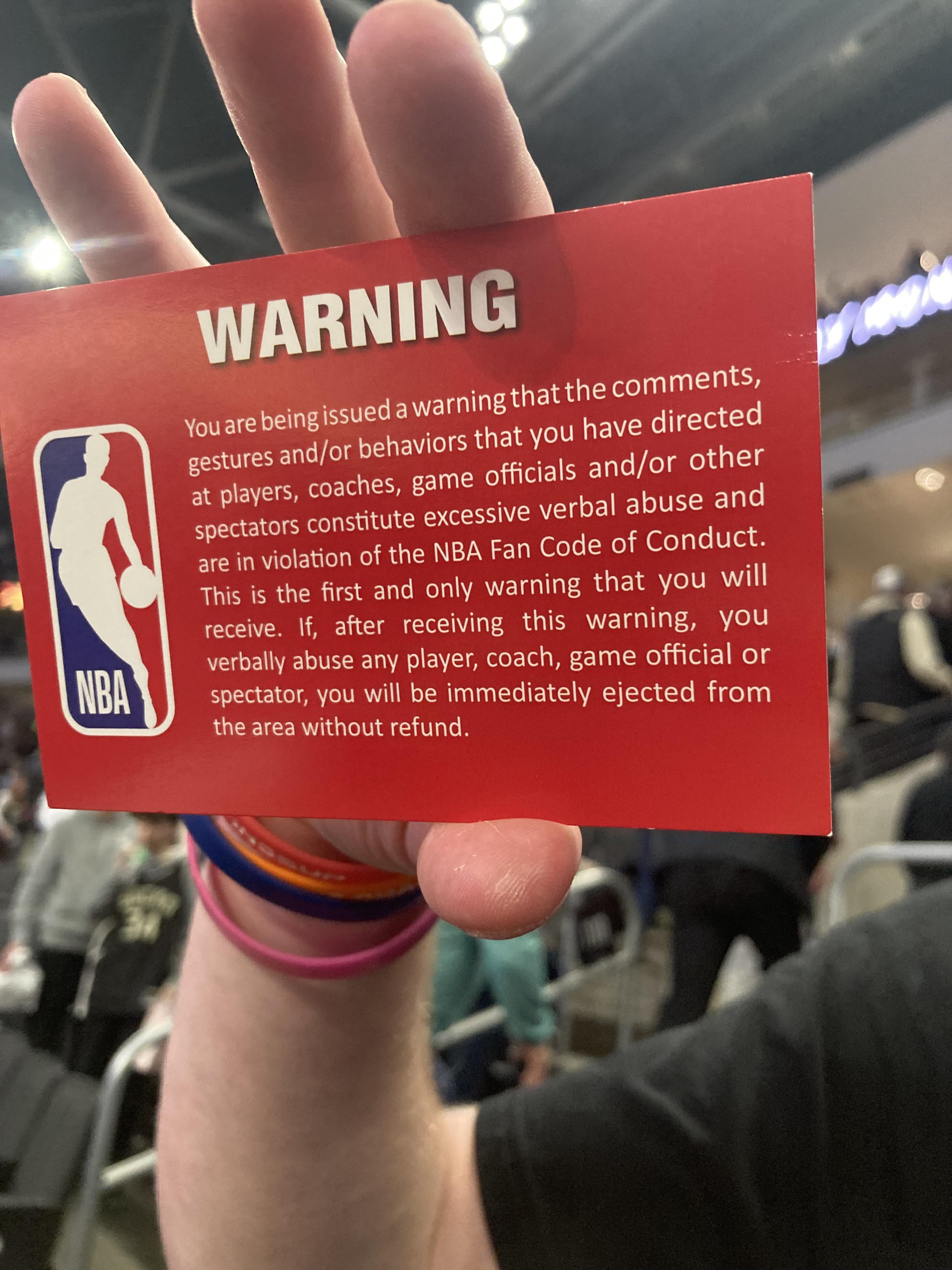 I was there with my best friend (who is a diehard wolves fan). He agreed these dudes deserved the warning. Underage drinking, swearing with kids around, and standing up with the back turned towards the hoop for 10+ seconds after every wolves basket lmao. We weren’t surprised when the usher stopped by…