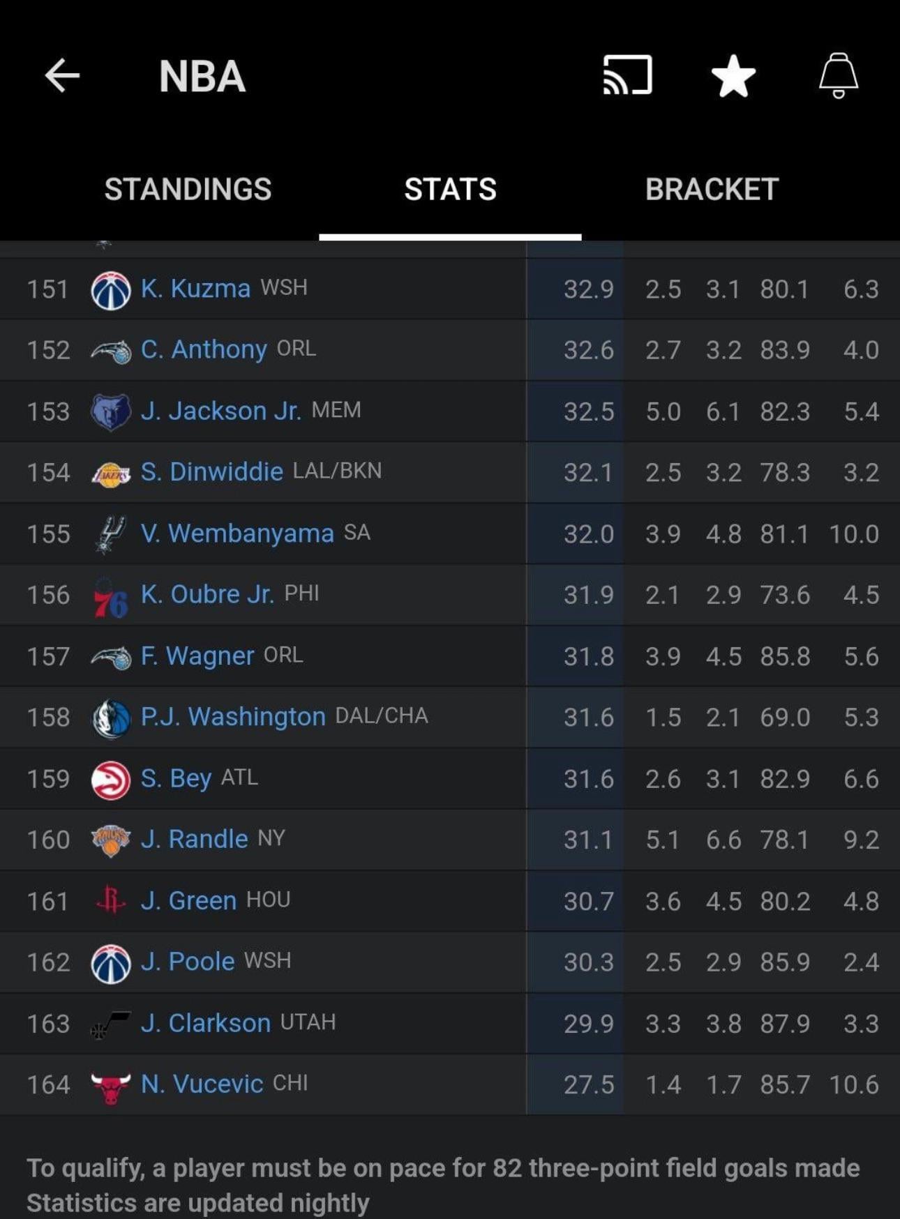 I’m surprised Kuzma is down that low. He makes 5 threes against us when we play them