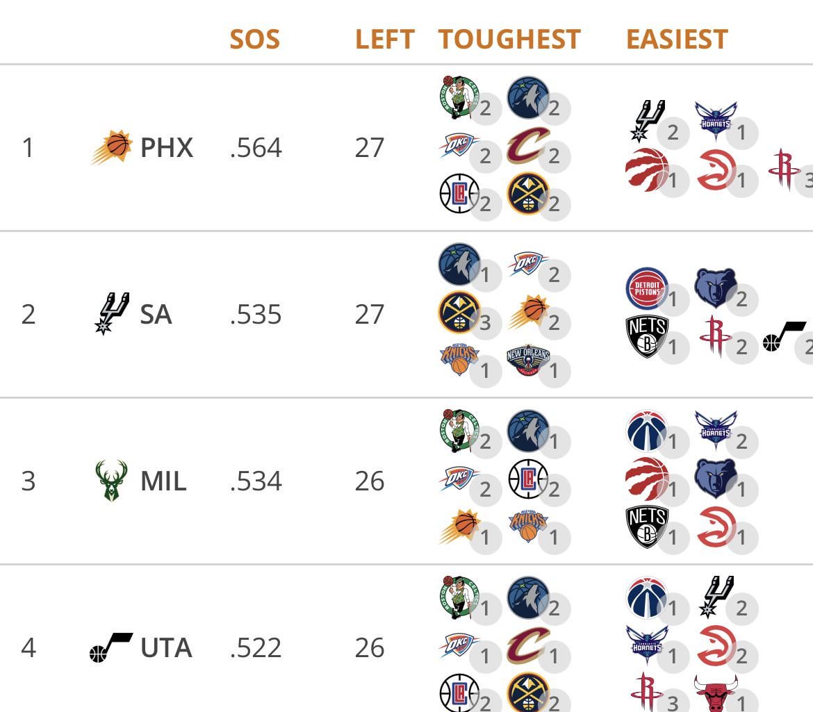 Suns have the toughest strength of schedule in the league remaining so how are we feeling boys? *So the Rockets are considered one of the easiest to beat*