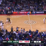 The rim and then put it on the floor and the second time he caught it in the corner I was like he’s going to shoot it they’re going to tell him he should have shot the first one he’s going to shoot it and he did and he drilled it and of
