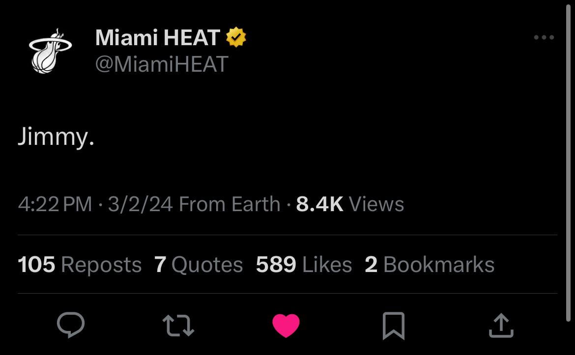 JIMMY BUCKETS: 37/3/7 AND A STEAL AND A BLOCK by bomac14 Eastern ConferenceMiami HeatSoutheast Division Prev Post [Post Game] Heat defeat the Jazz on kids night March 3, 2024 Next Post Scottie Barnes injury means Raptors season is over. So what now? March 3, 2024 10 Comments Thunderblast 2 years ago JIMBO bird720 2 years ago https://preview.redd.it/3r48cde3l0mc1.jpeg?width=1080&format=pjpg&auto=webp&s=3bf132da7ae7b7af12fd05bfbd4795aebe42bccf Honest-Layer9318 2 years ago He did it for the kids Rhythmhead 2 years ago ​https://i.redd.it/h2bts73cl0mc1.gif Letsgodolphins1920 2 years ago https://preview.redd.it/b4kqhpsel0mc1.jpeg?width=2000&format=pjpg&auto=webp&s=8f5de0f98f3aea828db2c28e4068938ab7394e0fJimmy counting up the dubs!!!!! pharmdee4 2 years ago Playoff Jimmy > Jordan aluminum-slugger 2 years ago https://preview.redd.it/otonz4tdm0mc1.jpeg?width=726&format=pjpg&auto=webp&s=af0acee697747856813c1c7cc46d1e1e61ef591eJimmy. MiamiHeatAndNCFC 2 years ago 🐐 ThaCarter 2 years ago **HEAT WENTZ** LloydChrismukkah 2 years ago That guy is pretty good at basketballWrite A CommentYou must be logged in to post a comment.