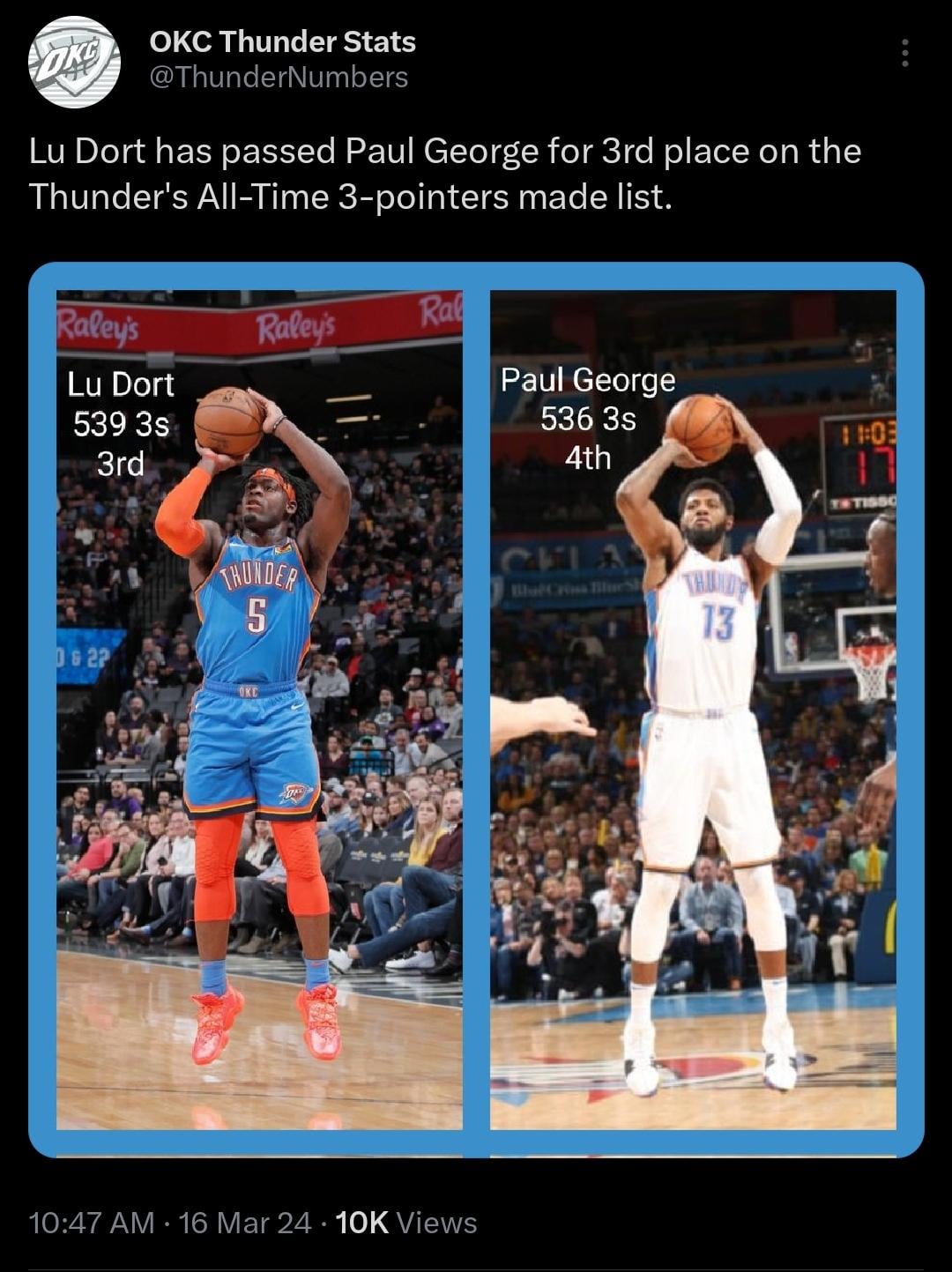 Lu Dort is Now 3rd in 3s Made for the Thunder by MediumOtter Northwest DivisionOklahoma City ThunderWestern Conference Prev Post [NElGHT_] Jaylen Brown in March: • 30/6/4 • 52% from the field • 40% from three 7 is on another level rn. March 16, 2024 Next Post #13 Illinois vs Nebraska Highlights | NCAA Men’s Basketball | 2024 College Basketball March 16, 2024 3 Comments Top-Surprise6577 2 years ago D revisioncloud 2 years ago 3 and DThe D stands for Dort a_h_l_m 2 years ago Who had Lu shooting +40% from 3 on their bingo card this year?Write A CommentYou must be logged in to post a comment.