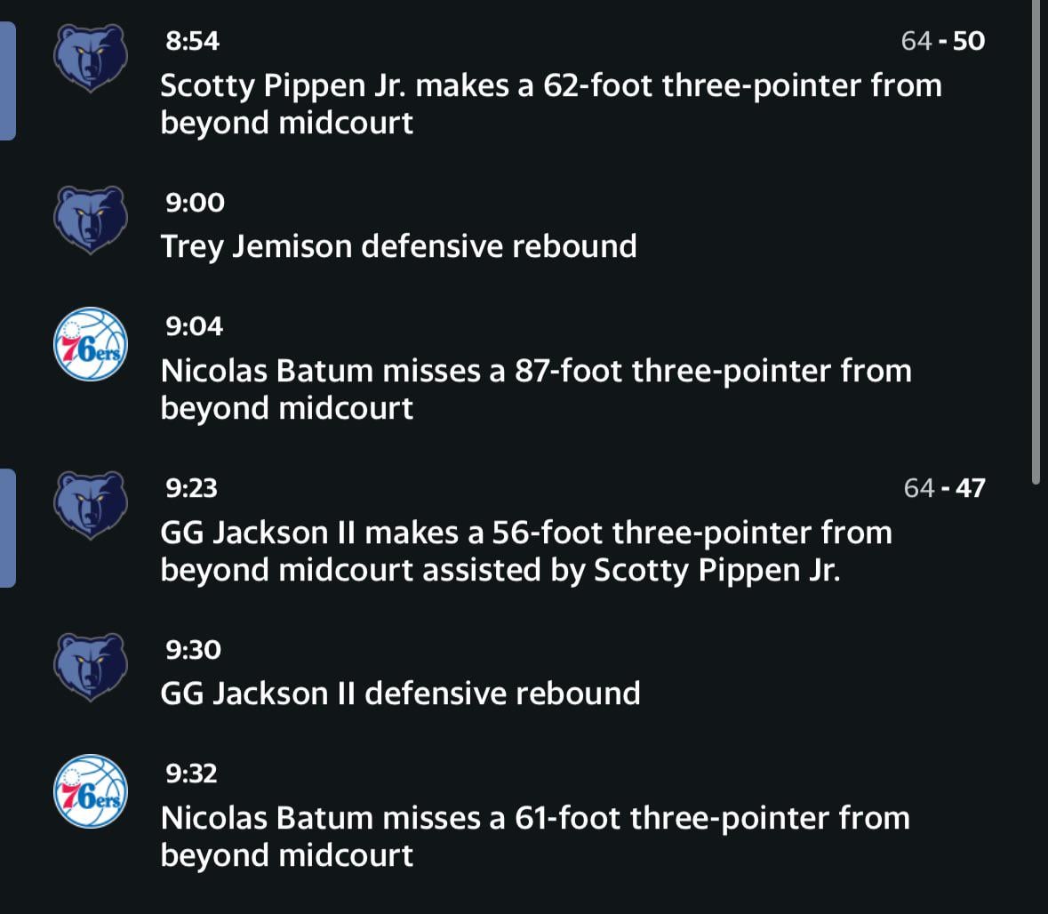 It’s like they didn’t flip the direction at half in the system that generates the play by play. A corner 3 becomes a 94’ shot