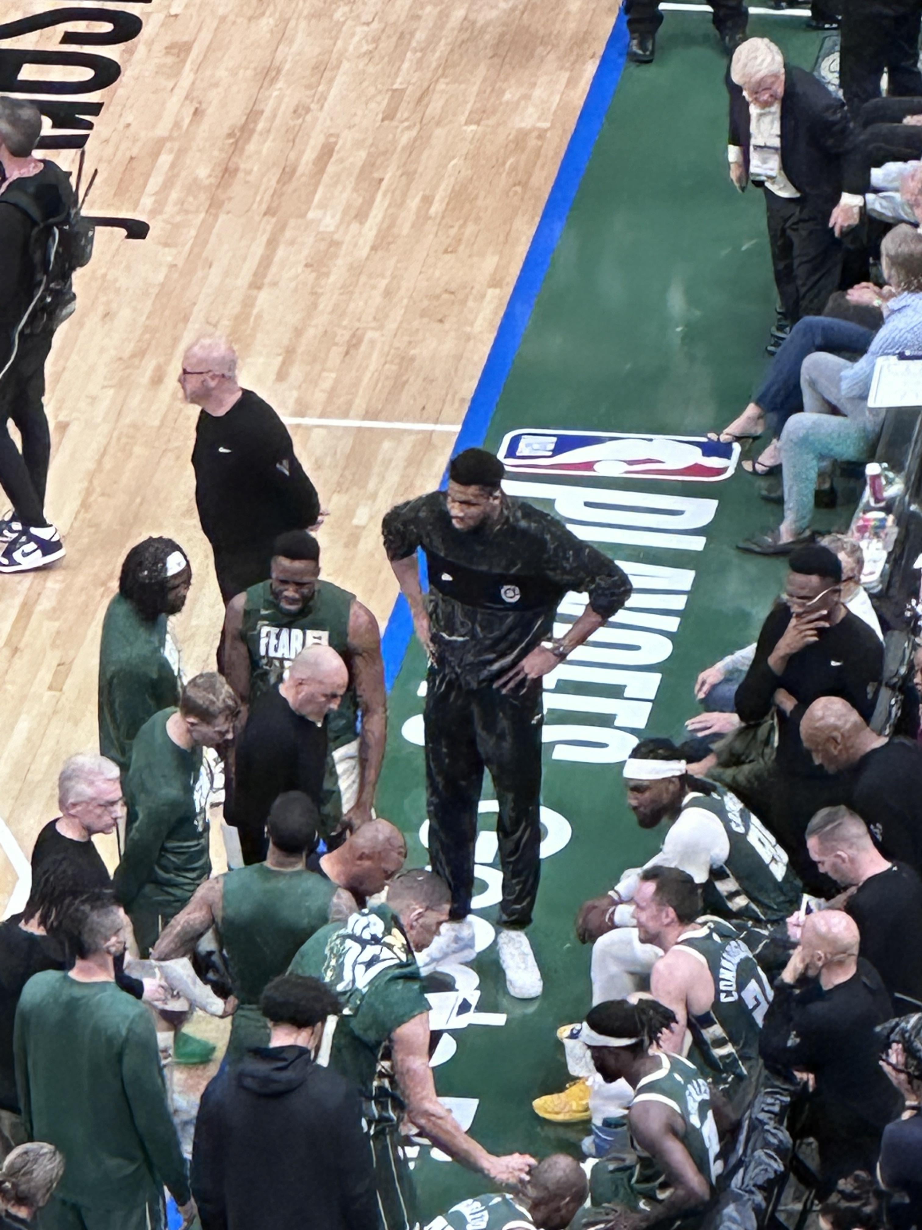 We miss you my glorious king by itsjustme9820 Central DivisionEastern ConferenceMilwaukee Bucks Prev Post Ant thought the ref was going for the dap after his block 💀 April 24, 2024 Next Post Knicks radio broadcasters Pat O’Keefe and Monica McNutt live reaction to the scramble and clutch buckets from Brunson and DiVincenzo to go up by 1 against Philly April 24, 2024 4 Comments BPicks69 2 years ago 1-1 could have been worse. Hoping he’s ready to go. BucksFan654 2 years ago Got no chance without our King Giannisisnumber1 2 years ago We need him bad. He’s the only answer we have for slowing Siakam. He’s prime Jordan right now. red-1313 2 years ago I like his outfit. looks very comfy.Write A CommentYou must be logged in to post a comment.