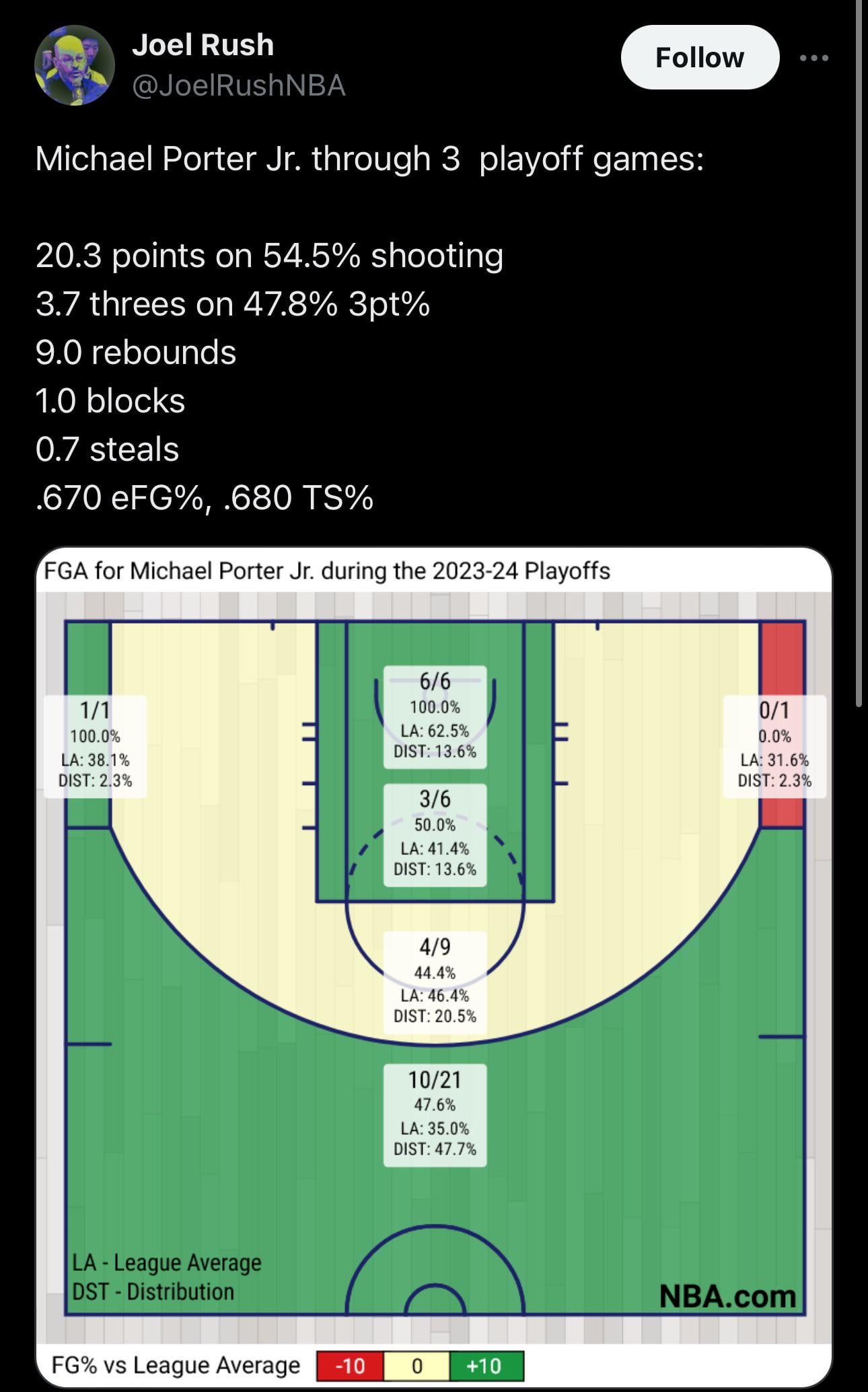 If he plays this consistent the whole playoffs I think we win another ring. Last year he wasn’t great, if he can score 20-25 the nuggets win almost every game.