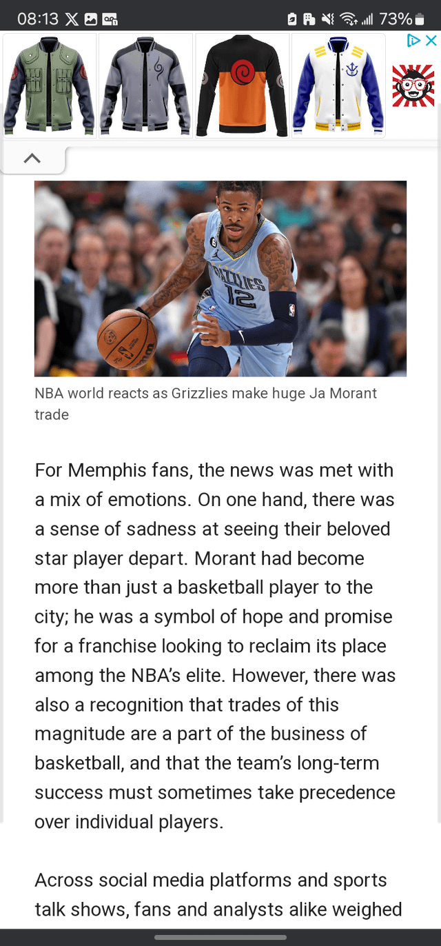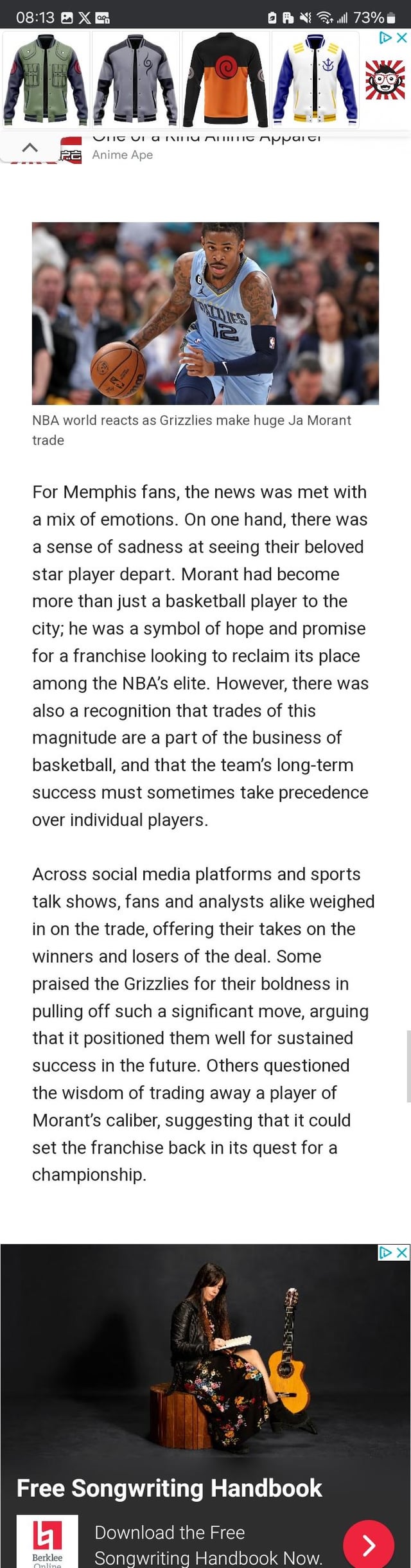 Anyone Else Spammed With Trash Like This?by TheCupOfBrew Memphis GrizzliesSouthwest DivisionWestern Conference Prev Post Raptors in ‘no win’ situation ahead of NBA Draft Lottery May 11, 2024 Next Post Timberwolves fans before and after game 3 May 11, 2024 2 Comments RealisticTea4605 2 years ago Nope, but it’s going to happen. Ja will be a Laker. alex32593 2 years ago AI trash articleWrite A CommentYou must be logged in to post a comment.