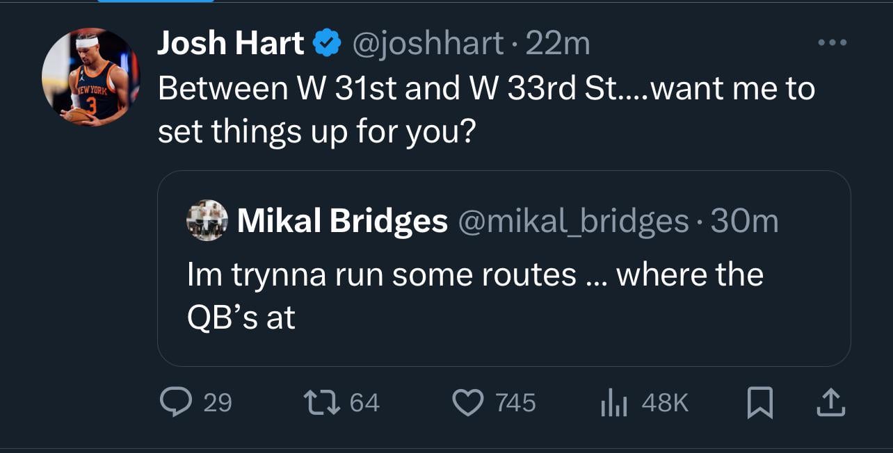 Nova needs to start bringing Josh Hart to their recruiting trips by Pinheadlarry29 Atlantic DivisionEastern ConferenceNew York Knicks Prev Post Dan Patrick: Luka Doncic’s Late-Game Behavior Was Embarrassing | 6/13/24 June 13, 2024 Next Post The Mavericks Fumbled Their Only Chance… June 13, 2024 1 Comment YourAsianBuddy 2 years ago Idgaf anymore, pay him under the table. Force a trade Mikal, we got youWrite A CommentYou must be logged in to post a comment.