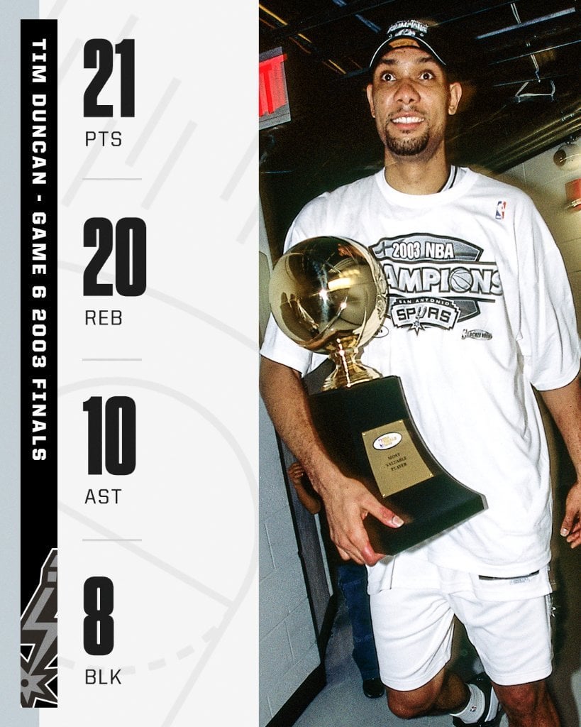 21 years ago on this day, Timmy dropped a near quadruple double in Game 6 to secure the 2003 NBA championship by Dsarg_92 San Antonio SpursSouthwest DivisionWestern Conference Prev Post RE- LIVE | FIBA 3×3 Europe Cup Qualifier 2024 | Slovakia | Day 1 – Session 1 June 15, 2024 Next Post Lakers Coaching Rumors: James Borrego & Sam Cassell Not Interested In Secondary Roles June 15, 2024 2 Comments DriveForFive219 2 years ago Naw it was a quad dub BrockOchoGOAT 2 years ago 03 Duncan was at the peak of his powers. An absolutely unstoppable force on both ends of the court.Write A CommentYou must be logged in to post a comment.