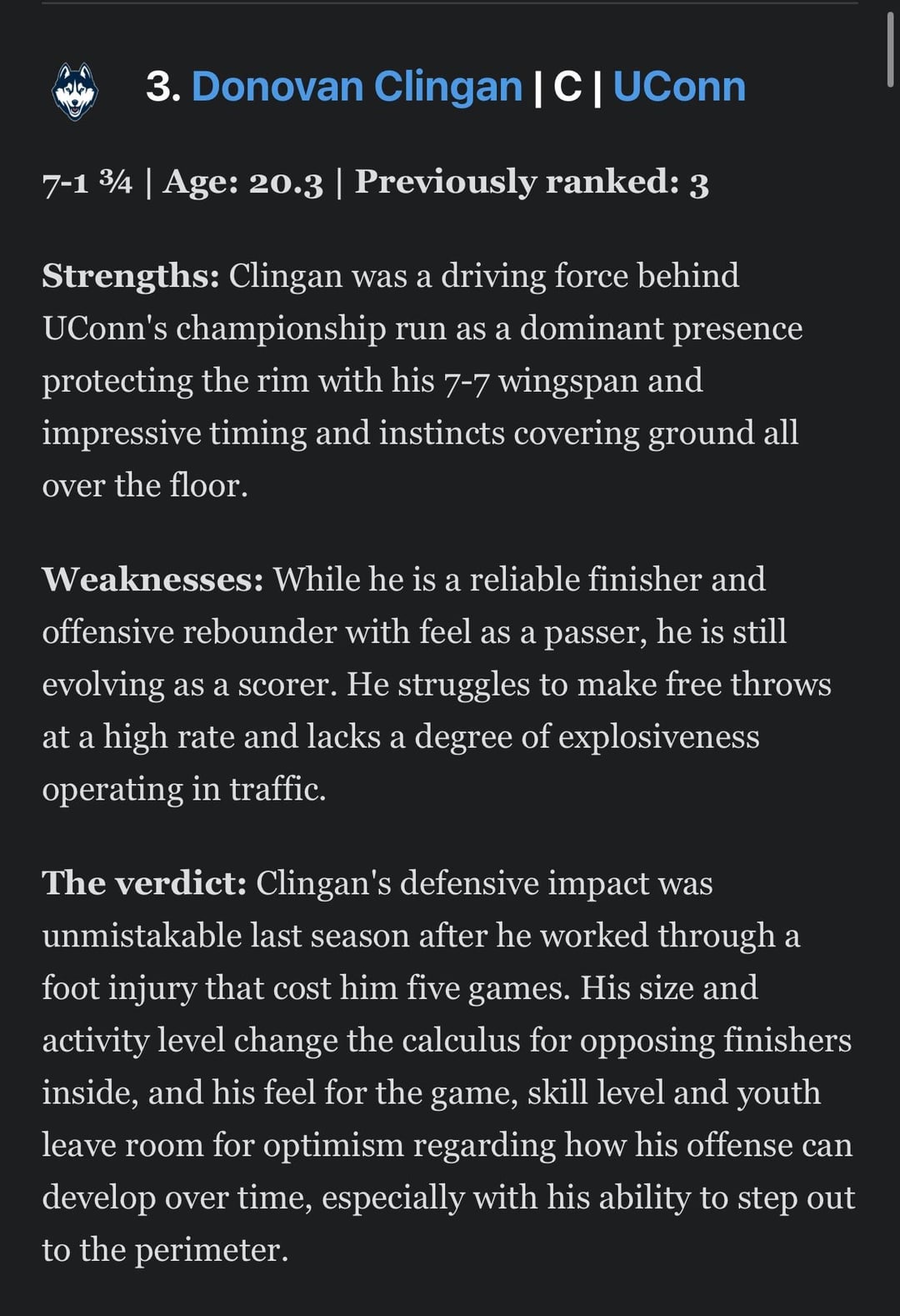 3. Donovan Clingan