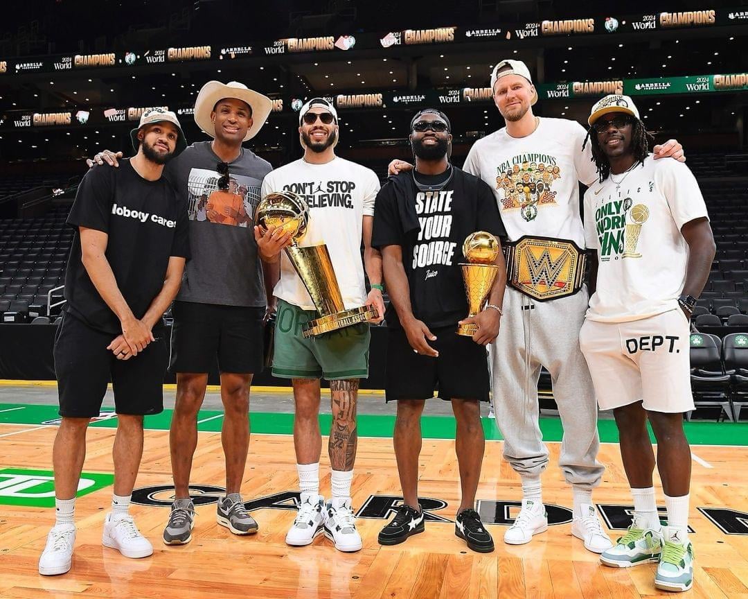 So much funny shit here. Al’s hat. Jaylen’s “state your source” tee. And fucking Ringus Kingus w the Belt, hooboy!