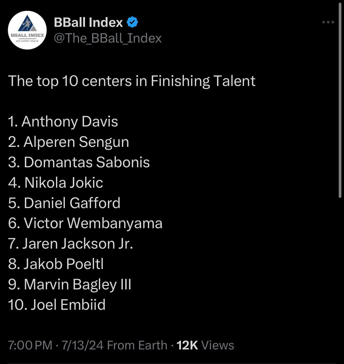 https://x.com/the_bball_index/status/1812306018527056359 by ST012Mi Houston RocketsSouthwest DivisionWestern Conference Prev Post CLING KONG SAID N🚫 July 14, 2024 Next Post TORONTO RAPTORS VS OKC THUNDER SL REACTION…RAPS DOMINATE, GRADEY DICK READY TO TAKE NEXT STEP! July 14, 2024 2 Comments ST012Mi 2 years ago  FarWestEros 2 years ago Surprisingly few lob threatsWrite A CommentYou must be logged in to post a comment.