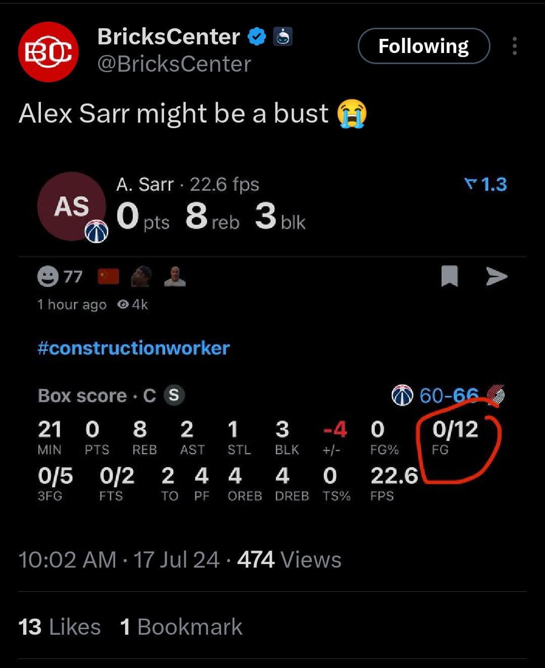 its summer league yall gotta chill, that said going 0/12 at 7 something is crazy 😭
