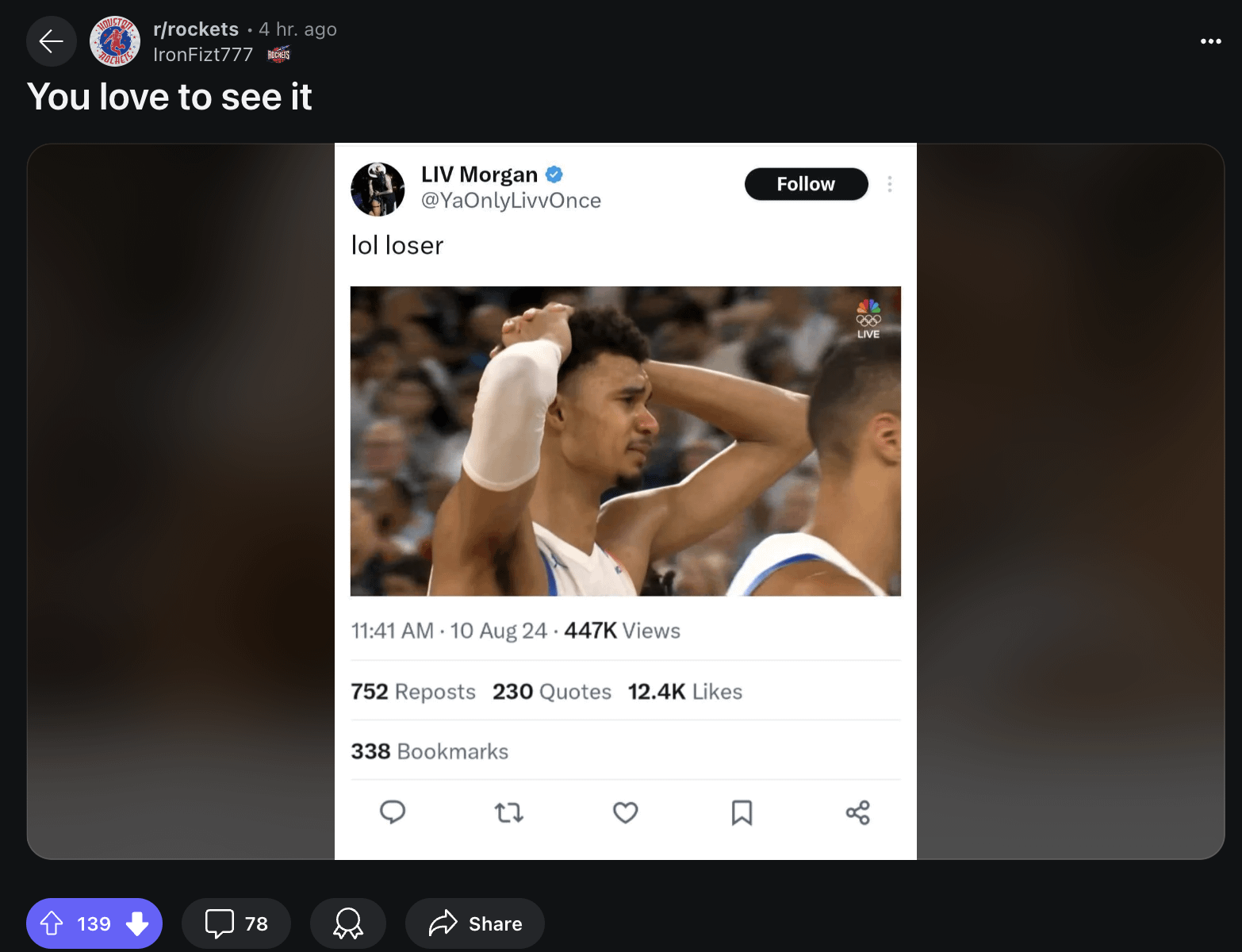 Ngl this is petty as hell on both sides. Both the Rockets sub and reposting it here.