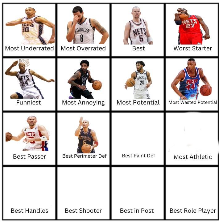 1. Jason Kidd 2. Kendall Gill 3. Gerald Wallace 4. Nic Claxton 5. David Nwaba