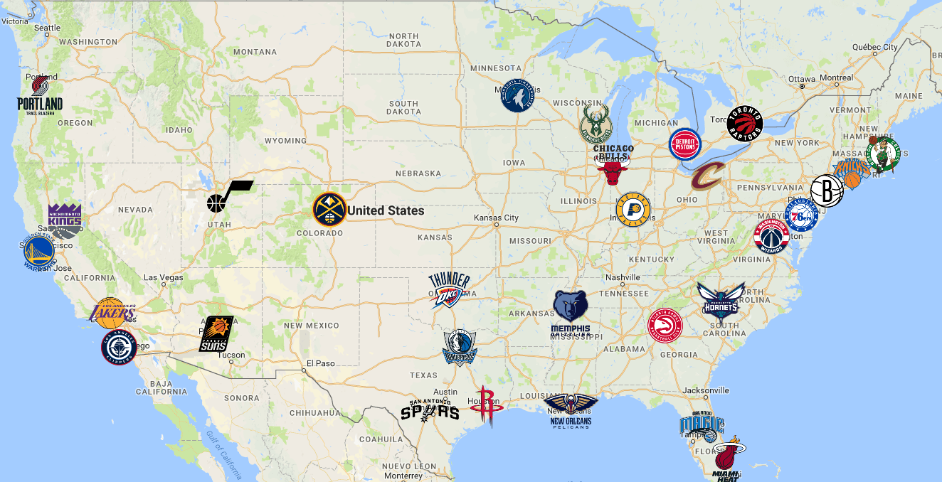 Minnesota shares the conference with the Thunder, Blazers, Jazz, and Nuggets. As a result, Minnesota travels more than any team in the NBA. In fact, 5 OTHER teams, from OTHER conferences — are CLOSER. Seriously, look at this map of all the NBA teams.