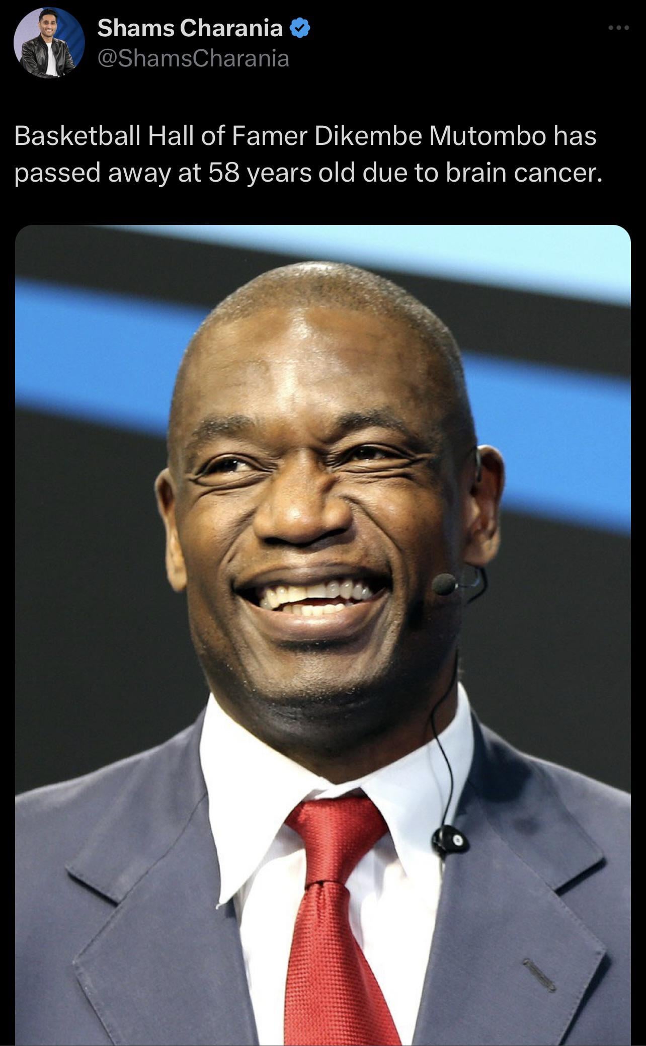 He was an amazing person. I met him a couple times when I was going to the Lexus lounge. He was a great human. RIP Mutombo and FUCK CANCER