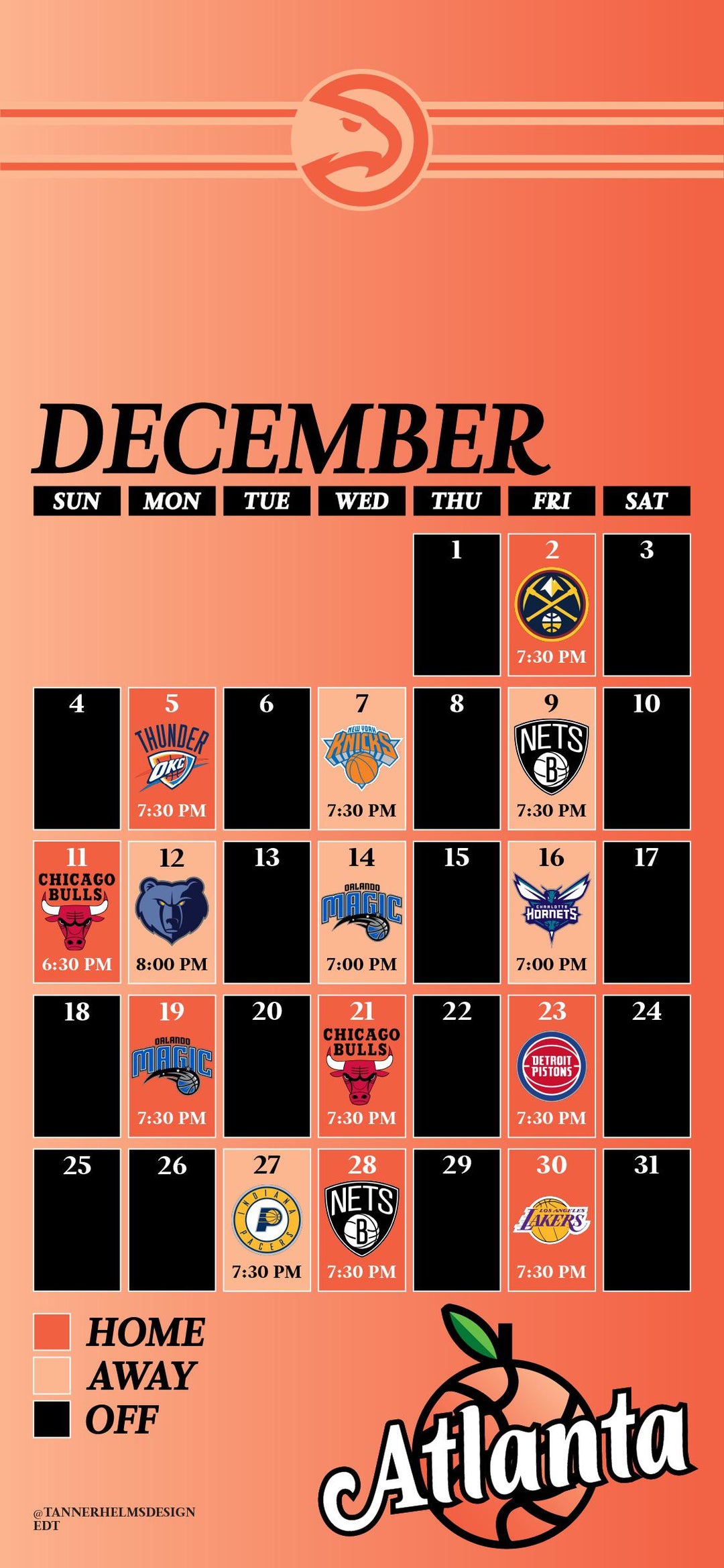 Time to update your wallpaper to this month’s schedule! (More time zones in the comments)by Lilhelmsy22 Atlanta HawksEastern ConferenceSoutheast Division Prev Post Nice Guy Obi Toppin MIC'D UP 🗣 | New York Knicks December 1, 2022 Next Post We’re gonna finish 6th in the west. December 1, 2022 1 Comment Lilhelmsy22 3 years ago [City Edition](https://imgur.com/a/QuFQf6H)[Regular Version](https://imgur.com/a/GS1yUch)Write A CommentYou must be logged in to post a comment.