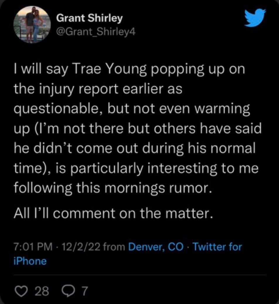 The tough time I have about believing this is that I feel like Trae would be a leader with John and Dre down, and not wanting to rush Bogi back..