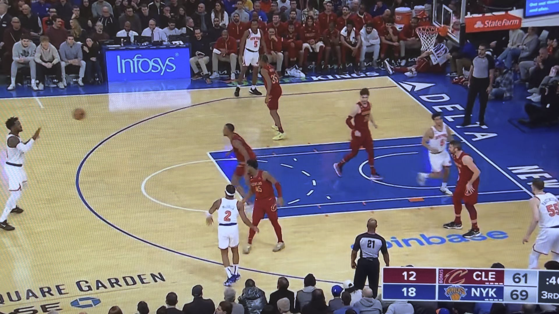 Randle keeps his head on a swivel and hustles back in transition to prevent the easy layup