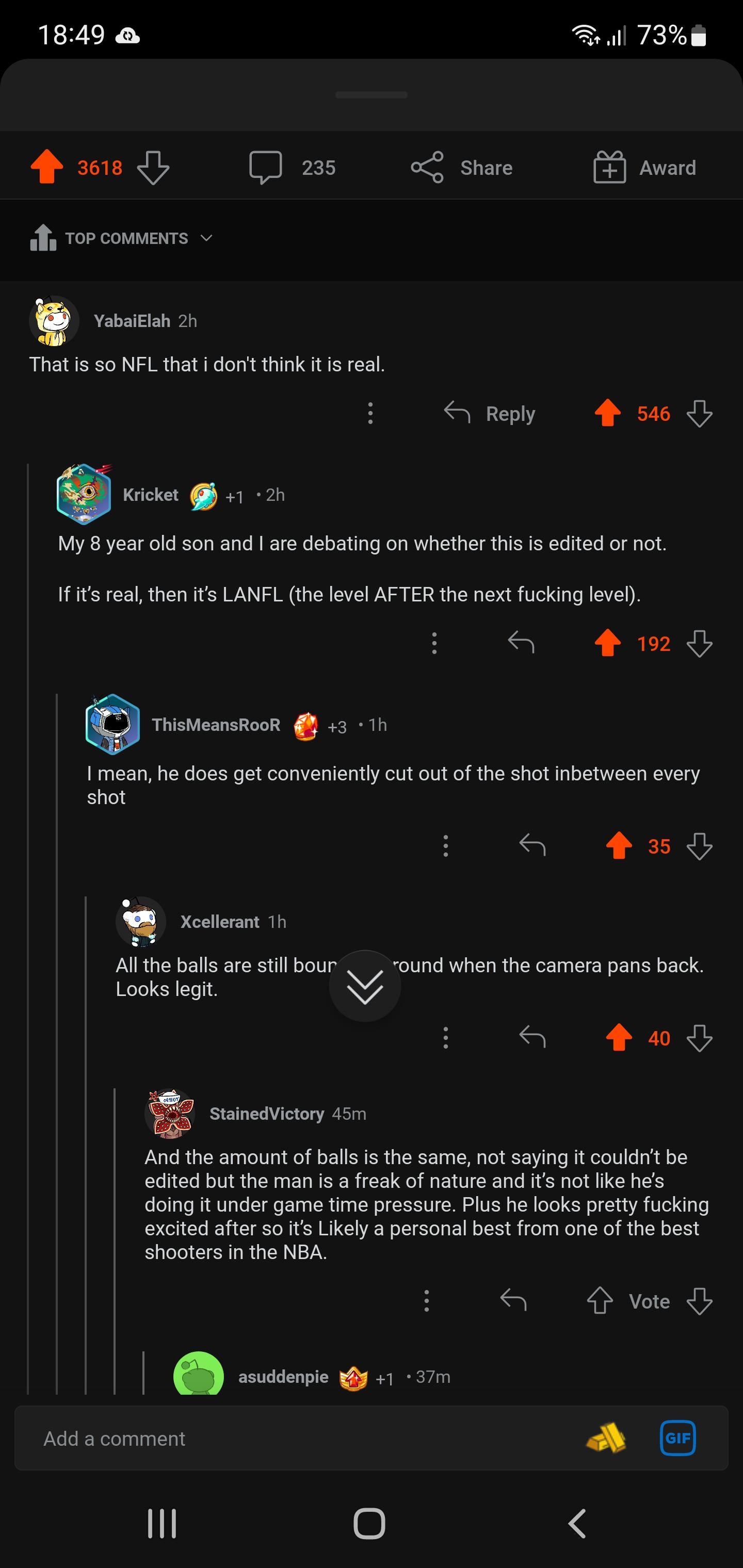 r/damnthatsinteresting debating whether stephs 5 half court shots are real or not lmao