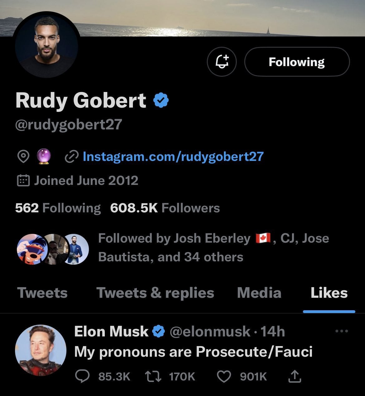 Rudy Gobert likes an Elon Musk tweet: “My pronouns are Prosecute/Fauci”