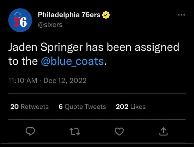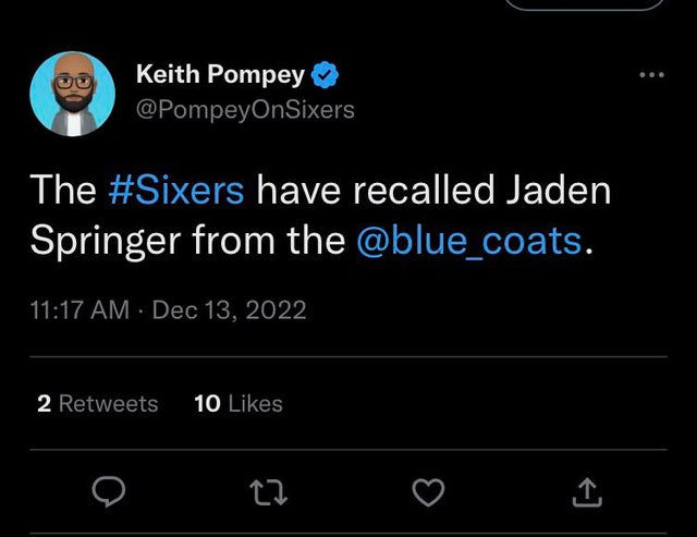 The Sixers recall Jaden Springer from the Blue Coats just one day after sending him there. by SomeGuyNamedJohn12 Atlantic DivisionEastern ConferencePhiladelphia 76ers Prev Post Charlotte Hornets future prospect scouting. Who to draft at 3-5. Why isn't Big Nick starting yet? December 13, 2022 Next Post JJ Redick: Ben Simmons is showing signs of LIFE! | First Take December 13, 2022 1 Comment lardbiscuits 3 years ago This dude is cheeks.Write A CommentYou must be logged in to post a comment.