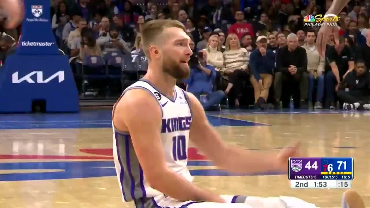 Sabonis reaction is so weak. Getting mad that this happened twice when it’s not even a foul and a clean play.