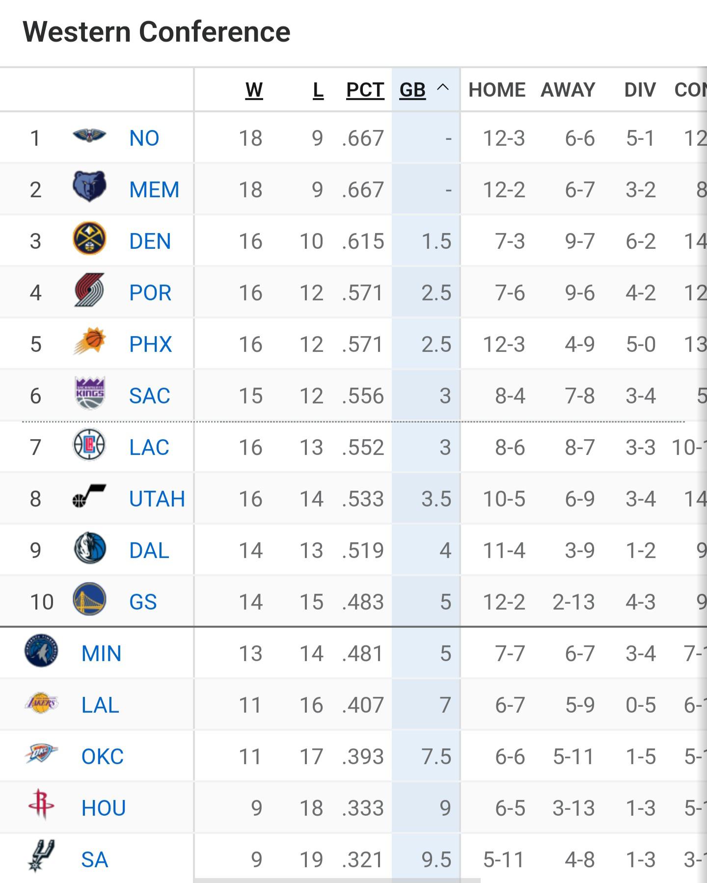 I know it’s exciting but the west is so close right now. It’s insane. At 4th place, we’re only 2.5 games out from being not even in the play-in game. Just goes to show we need to keep winning to come out on top of this crazy even conference
