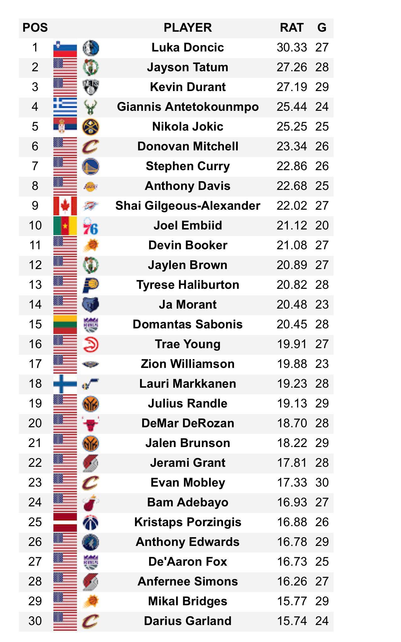 The 30 best players in the NBA this season according to Hoops Hype Global Rating rankings by johnb84r Atlantic DivisionBrooklyn NetsEastern Conference Prev Post POSTGAME SOUND: MAGIC VS. CELTICS | COACH MOSE, WAGNER, BANCHERO & WAGNER December 17, 2022 Next Post Reggie Miller Choke! December 17, 2022 1 Comment Versz_Marr 3 years ago Julius Randle above DeRozan should be a war crime. Write A CommentYou must be logged in to post a comment.