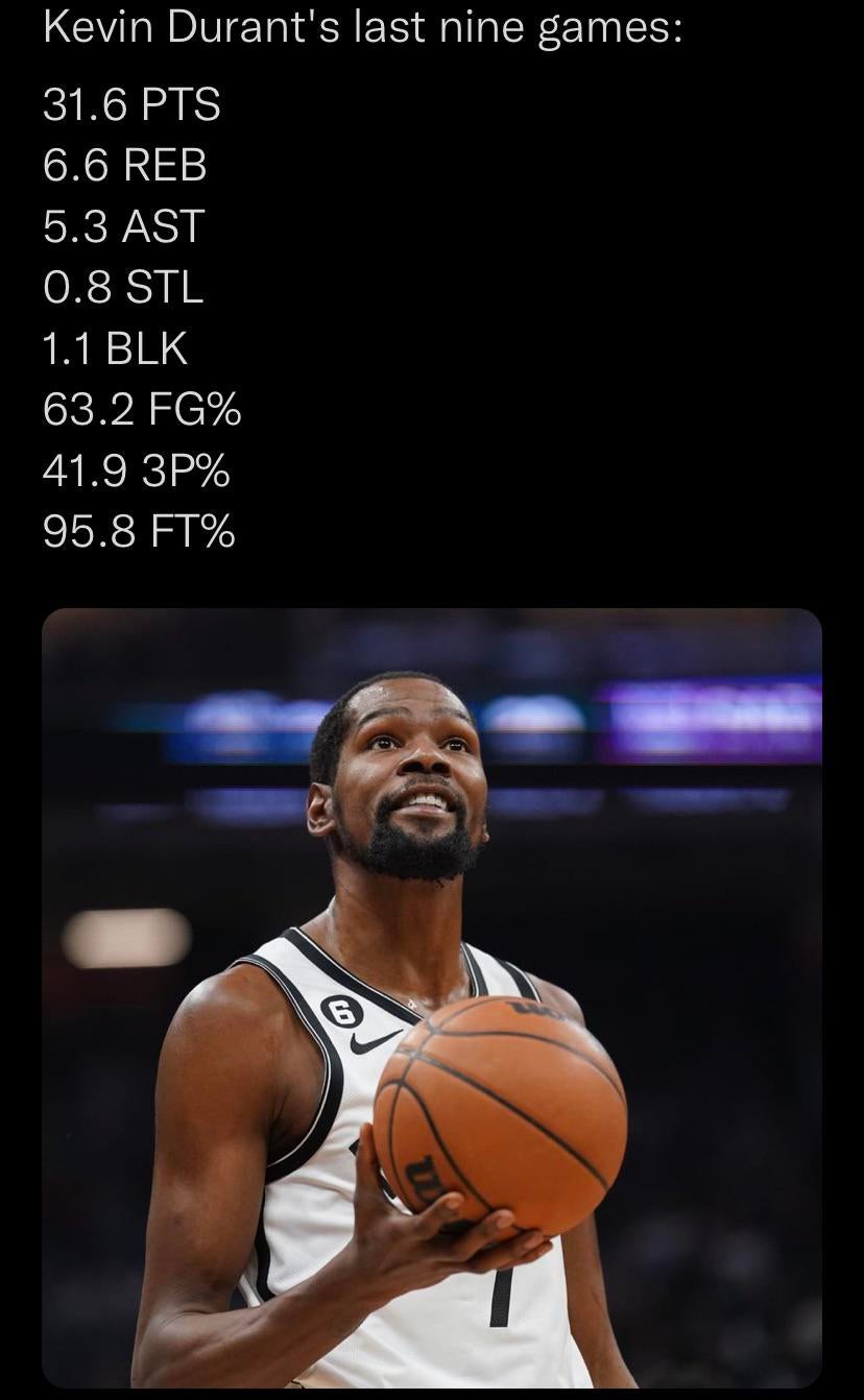 Need the media to push for it. If the Nets can get top 2 seed and KD stays hyper efficient monster that he is currently, he should be the MVP by a good margin