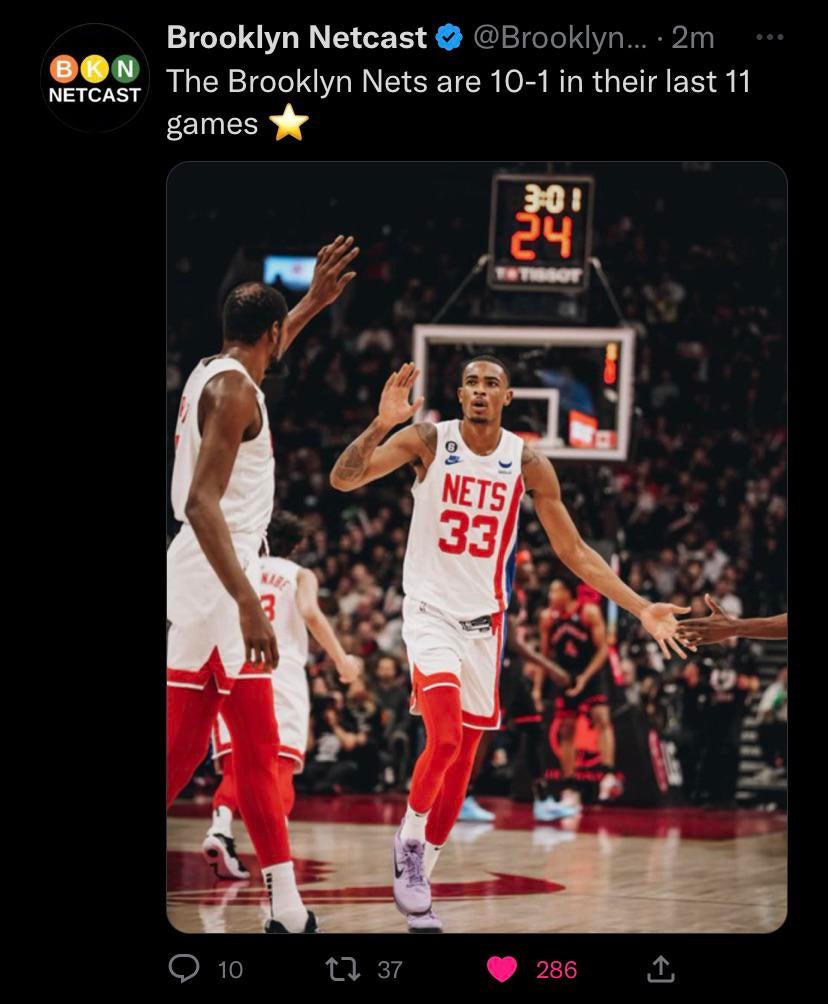 10-1 !!!! #GoNets by Abderuless Atlantic DivisionBrooklyn NetsEastern Conference Prev Post Detroit Pistons VS Brooklyn Nets FULL 4th QTR Highlights | Dec 18 2022 NBA Regular Season December 19, 2022 Next Post Detroit Pistons VS Brooklyn Nets FULL FULL GAME Highlights | Dec 18 2022 NBA Regular Season December 19, 2022 5 Comments AwesomoApple 3 years ago We’re going streaking! Eck5straxion 3 years ago Let’s keep this going!!! canadian12371 3 years ago One more east win against steph-less warriors but let’s destroy them. Then the bucks and the cavs… that’s where we make a statement. No more haters dismissing by saying, it’s just the pistons, or just the magic. I swear KD could have 100 points but if it’s not against the Celtics haters will still hate. Tressticle 3 years ago LIGHT THE BEAM! oh shit, wait.. kohbra 3 years ago I know these wins haven’t all been against “good” teams, but this is what good teams do.. they consistently beat weaker teams. Write A CommentYou must be logged in to post a comment.