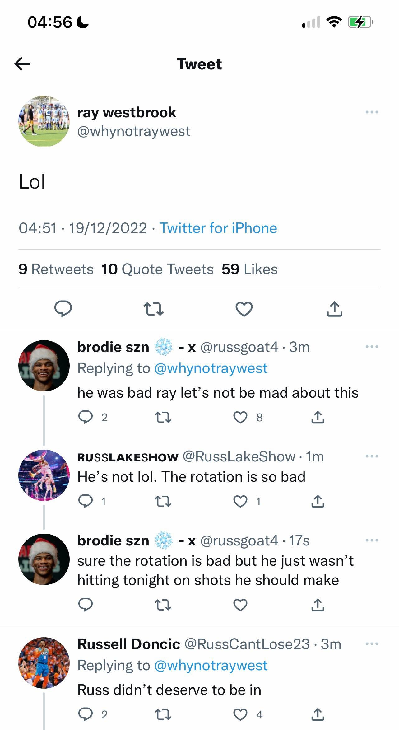 Russ is ass af so glad he didn’t close the game. Legit we were all happy a rookie was in instead of him