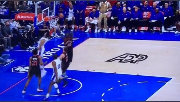 Yikes. Is this a weird angle? Or did Scottie not feel he could yam it over Harrel?