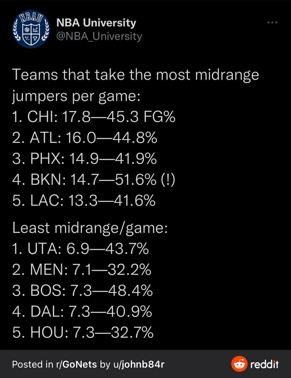 Do we not take enough midrange jumpers? Last in the league. by StarlordOfArkansas Northwest DivisionUtah JazzWestern Conference Prev Post This is crazy December 20, 2022 Next Post NBA “Best Christmas Day Plays” 🎄 MOMENTS December 20, 2022 Write A CommentYou must be logged in to post a comment.